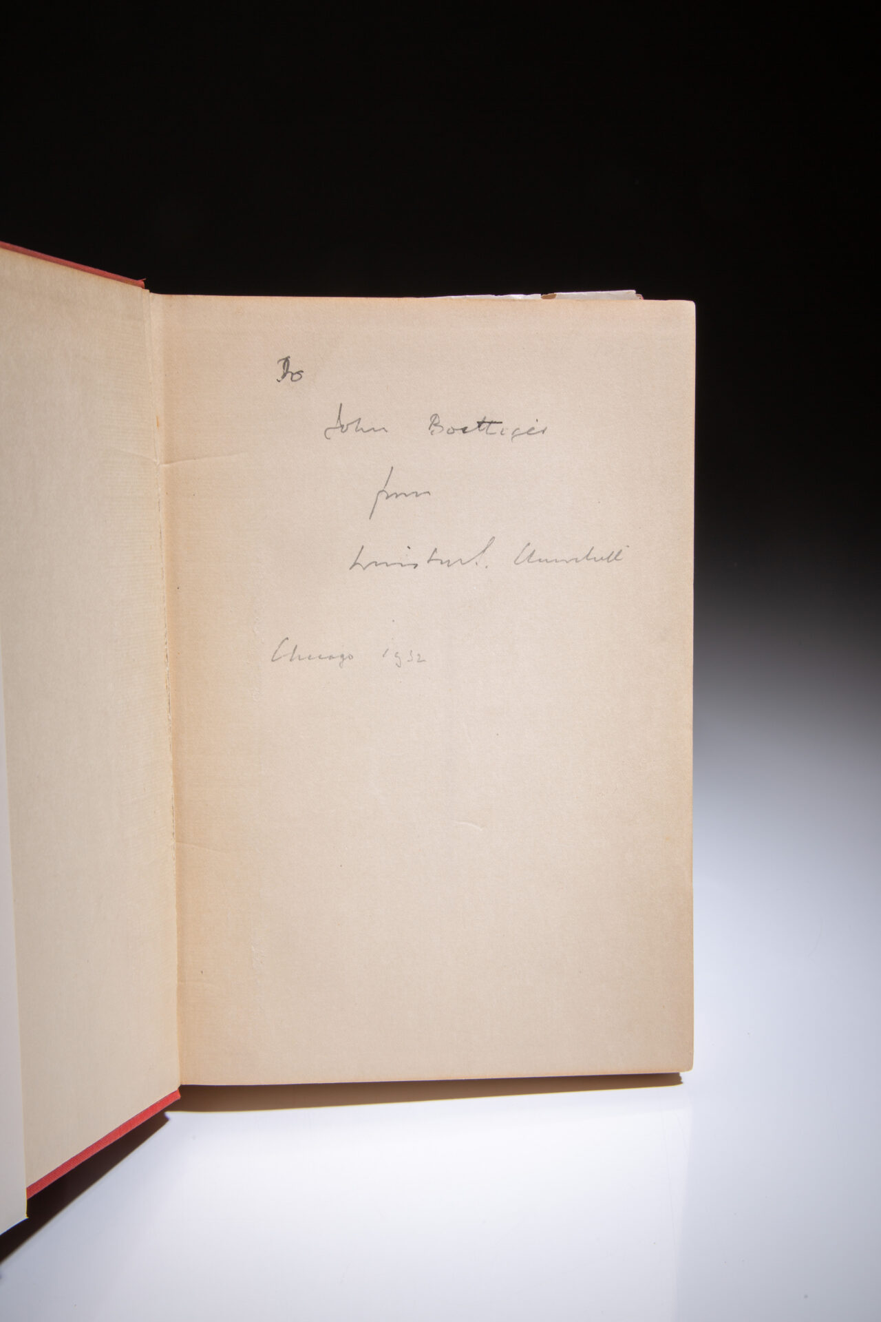 Inscribed on the front free endpaper: “To John Boettiger / from / Winston S. Churchill / Chicago 1932.”