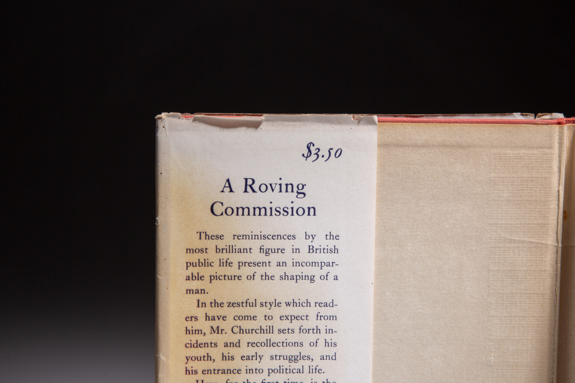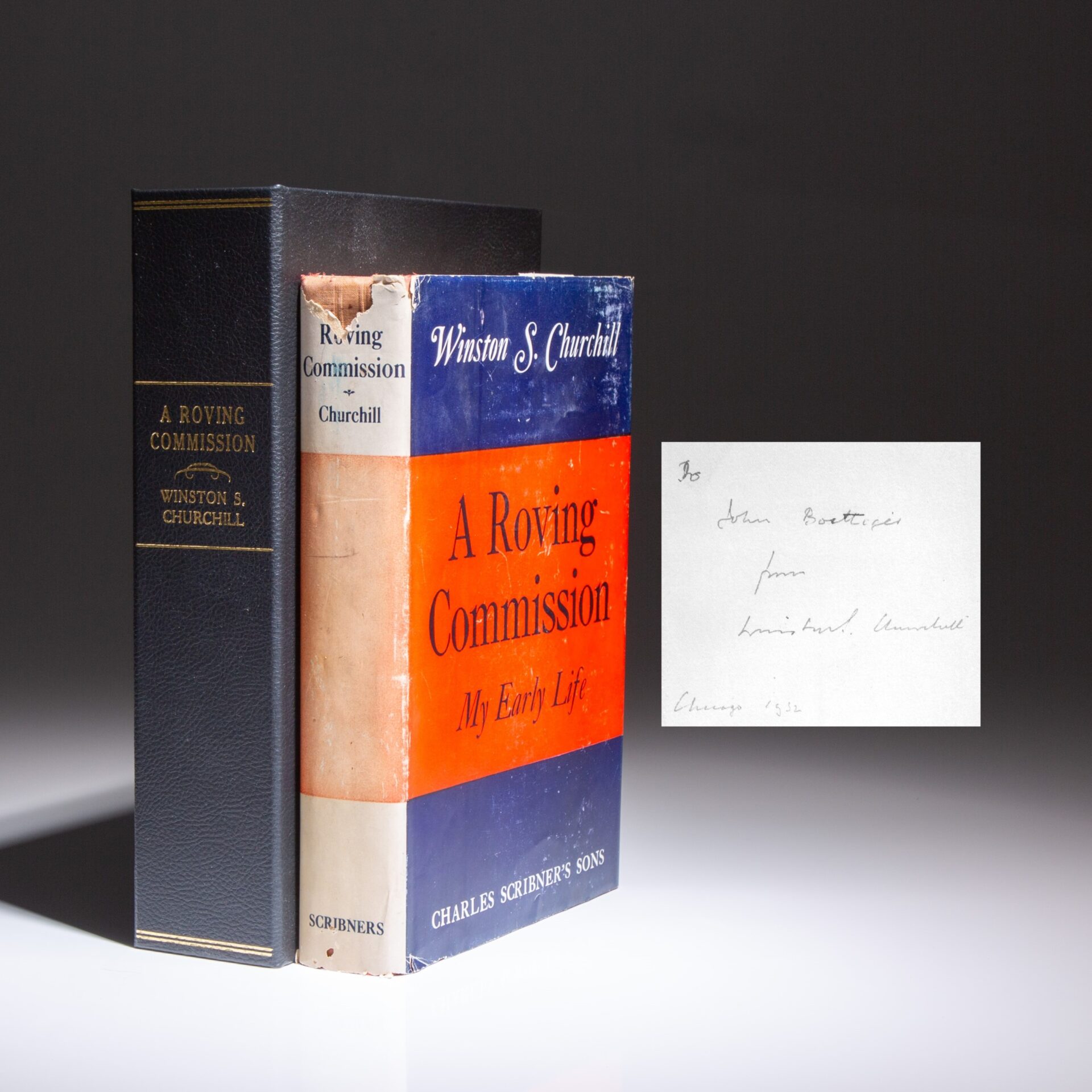 Presentation copy of A Roving Commission: My Early Life, inscribed by Winston Churchill to the son-in-law of President Franklin D. Roosevelt, John R. Boettiger.