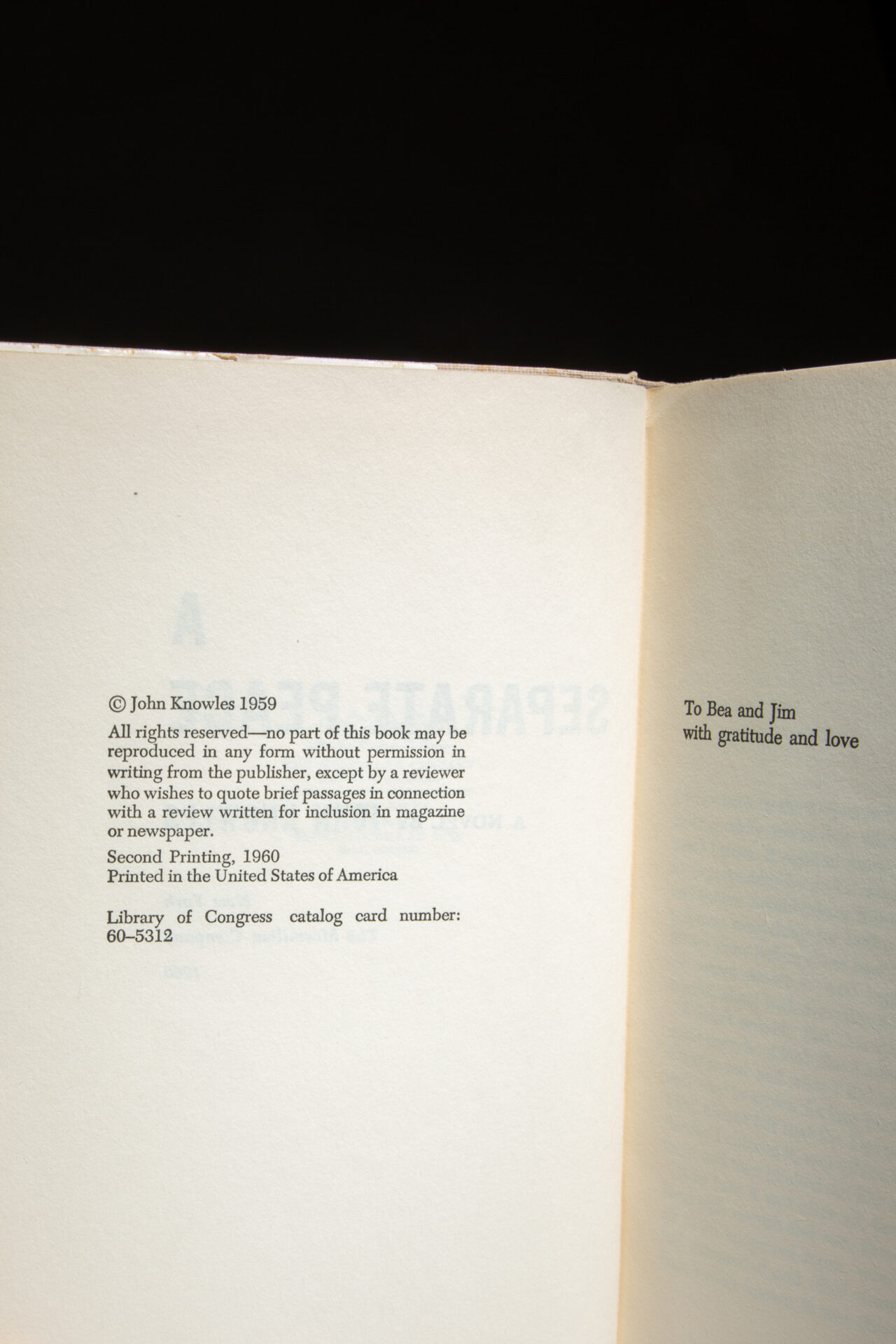 The first edition, second printing of A Separate Peace by John Knowles.