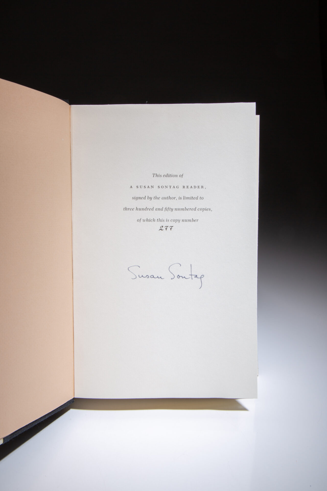 One of 350 copies, this one numbered 277. Signed by Susan Sontag on the limitation page.