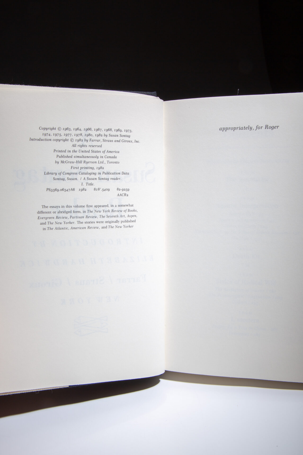 Signed limited edition of A Susan Sontag Reader by Susan Sontag.