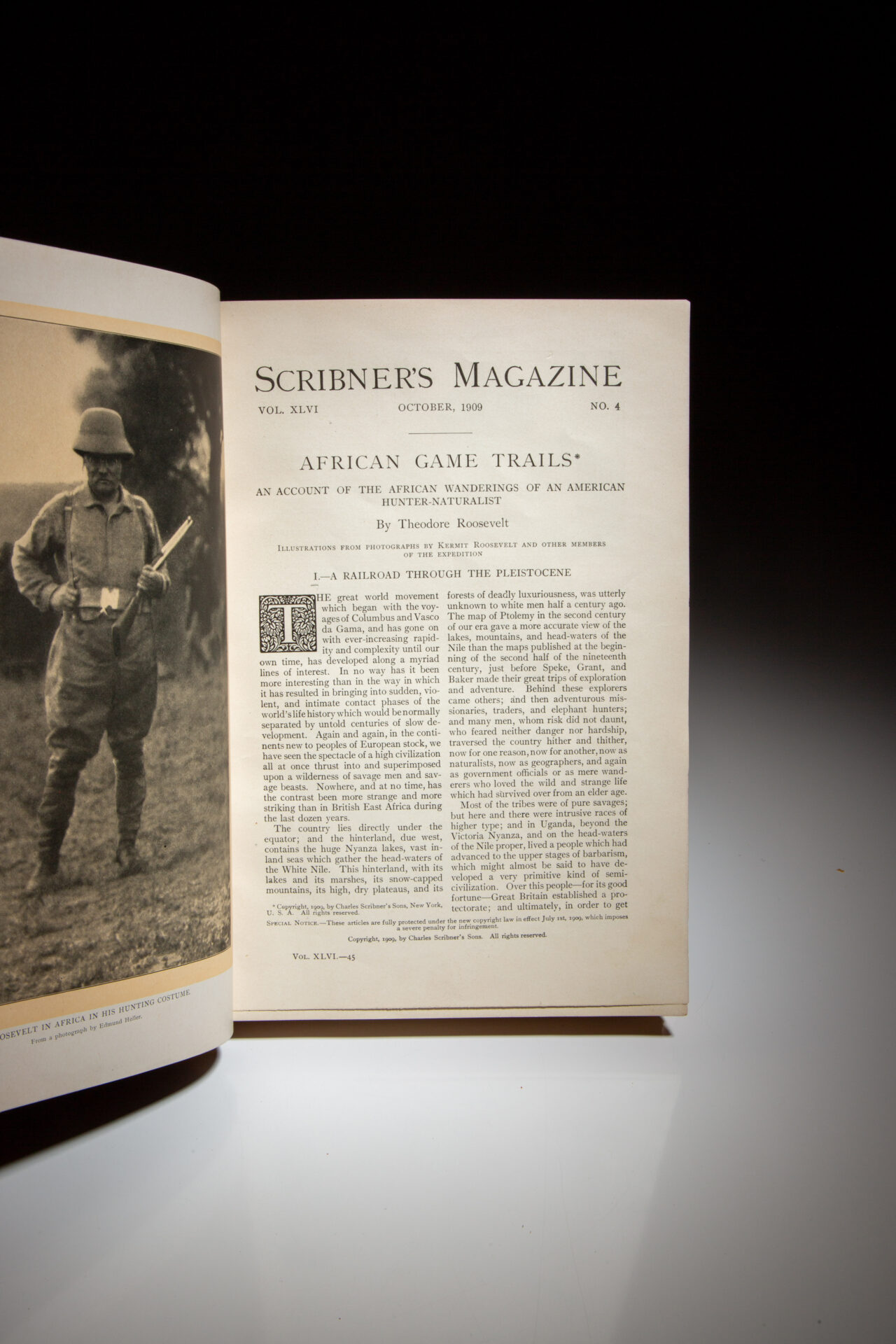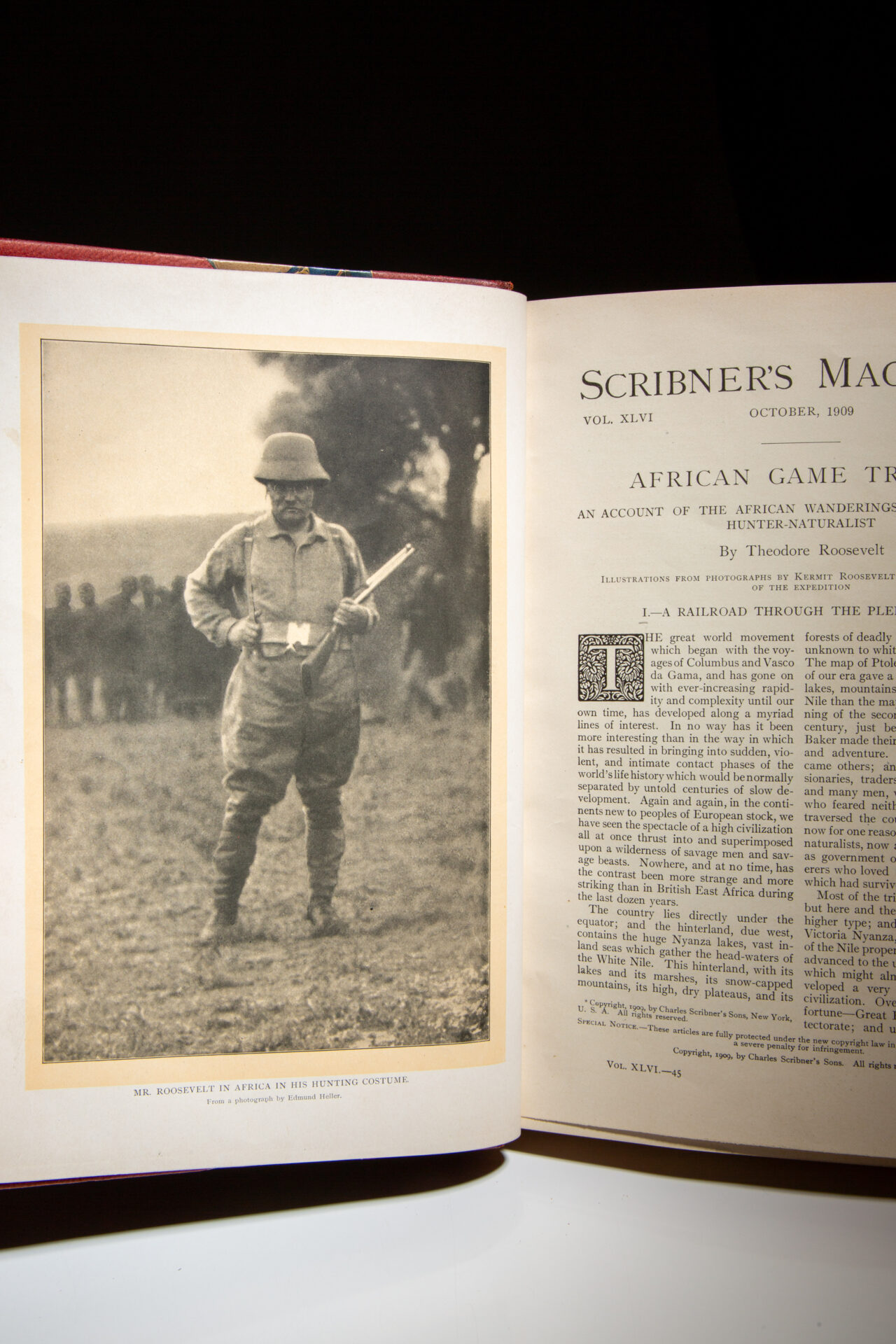The serialized publications of African Game Trails by Theodore Roosevelt, from Scribner’s Magazine, 1909-1910.