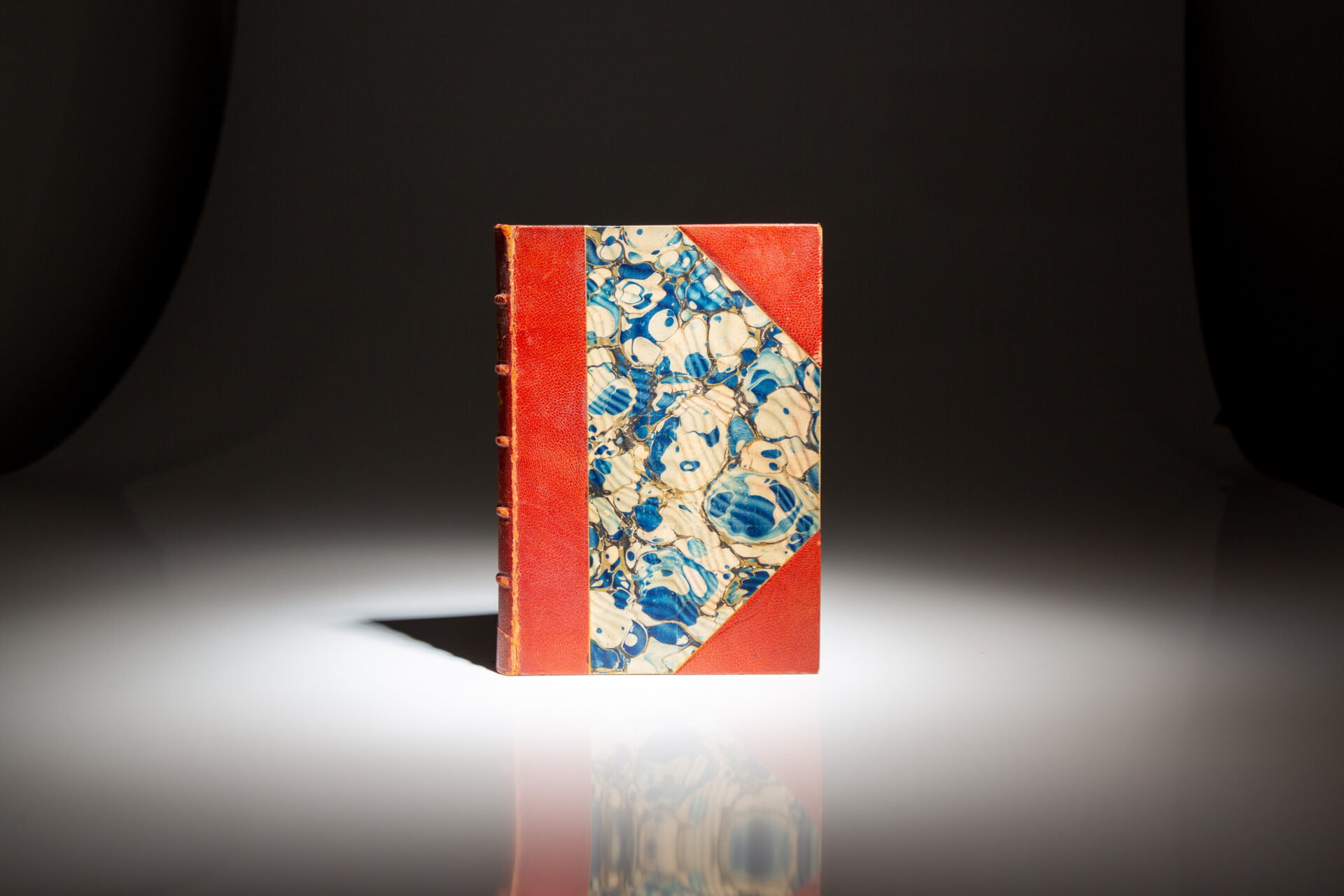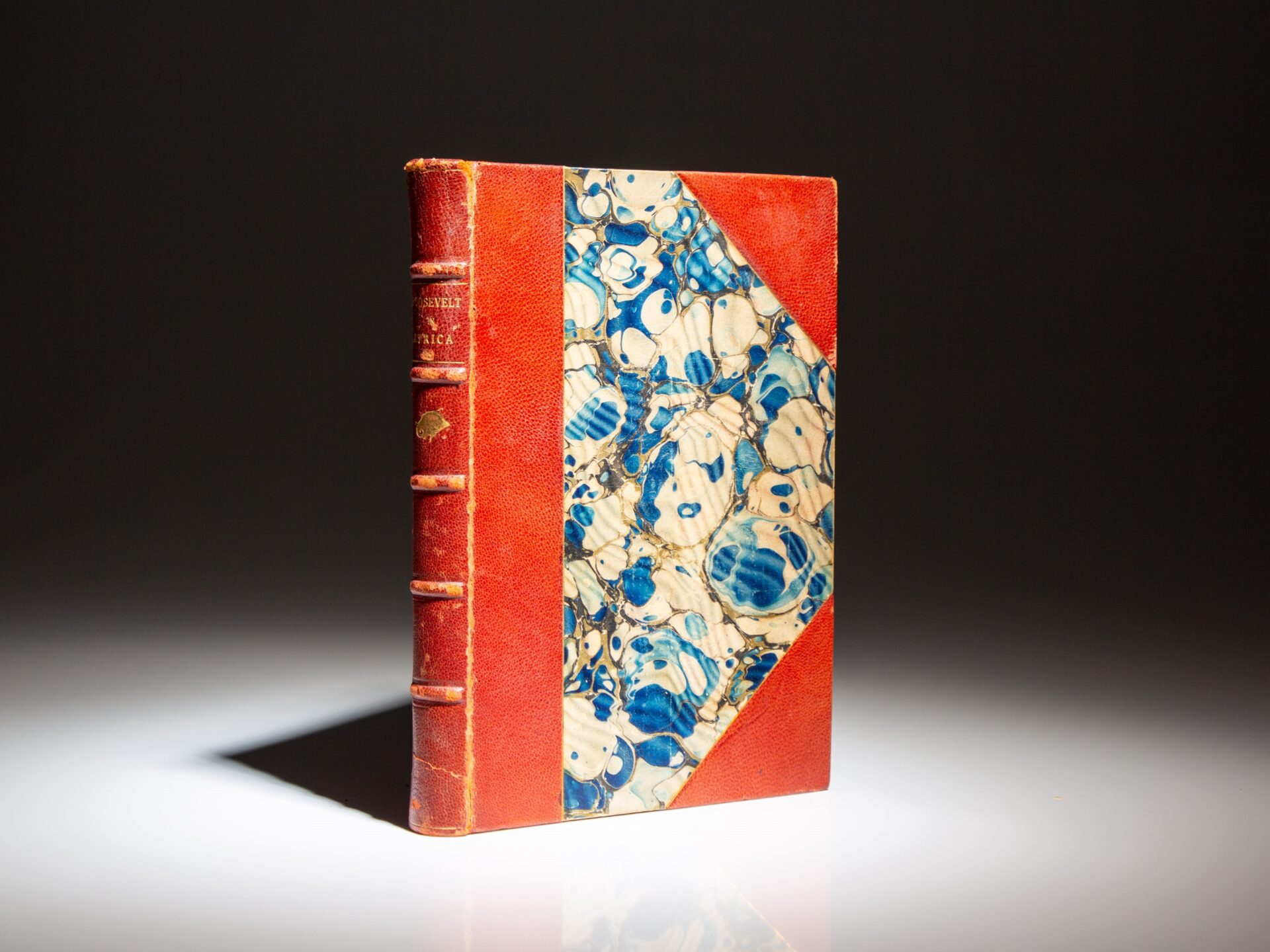 Octavo, [529pp.] Three-quarter red morocco, marbled boards, title stamped in gilt on the spine. Individual issues of Scribner’s Magazine separated by cardstock. Gray endpapers, bookseller’s label on the rear pastedown. Frontispiece portrait of Roosevelt from October 1909 issue. (Cole & Vail, A29b)