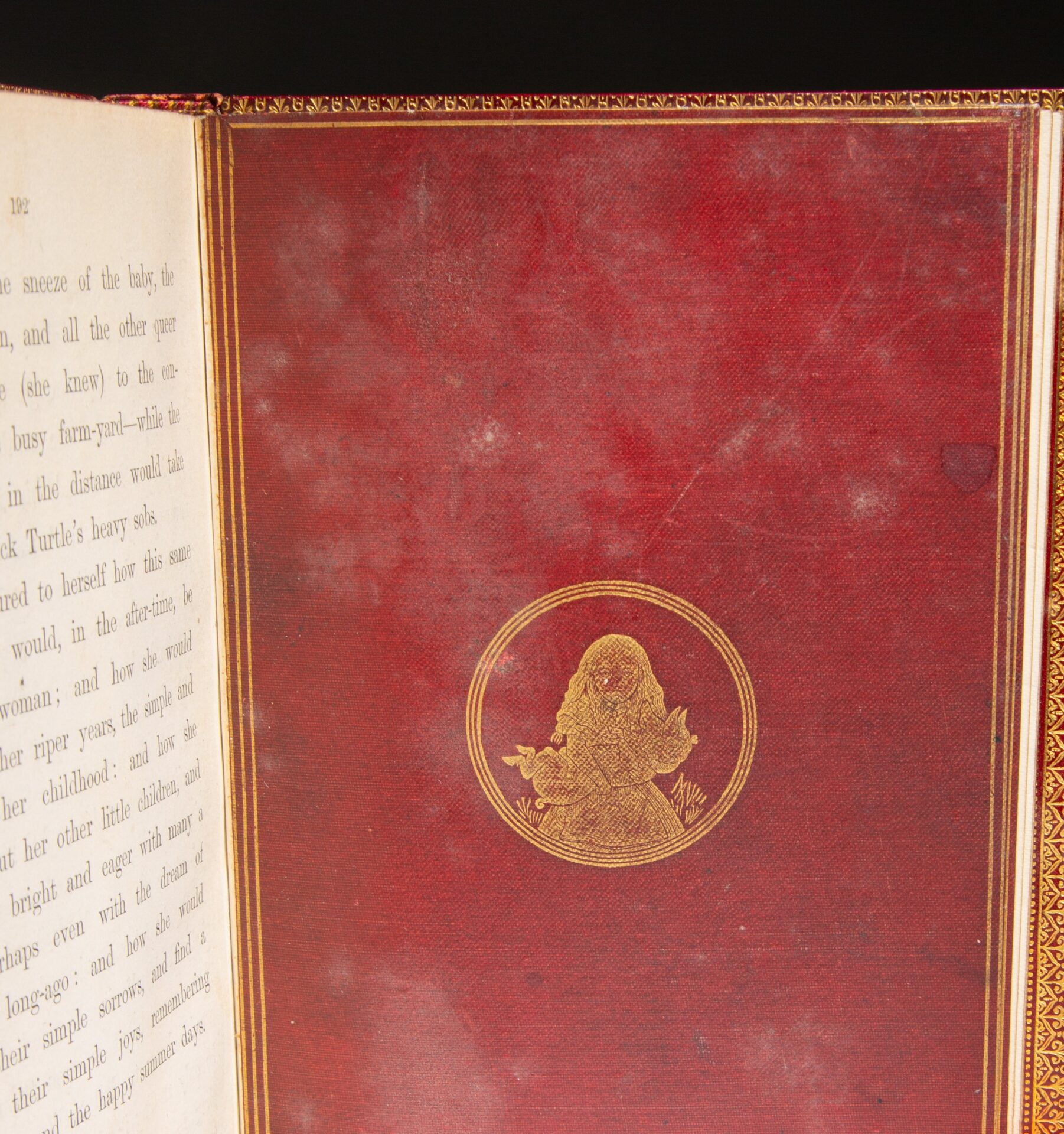 Through the Looking-Glass is a first edition, early impression, with the corrected “wabe” on page 21. Solid text block, touch of foxing to front and rear leaves. Front hinge of binding professionally repaired. Complete with fifty illustrations by John Tenniel, including frontispiece and chess diagram at front of volume.