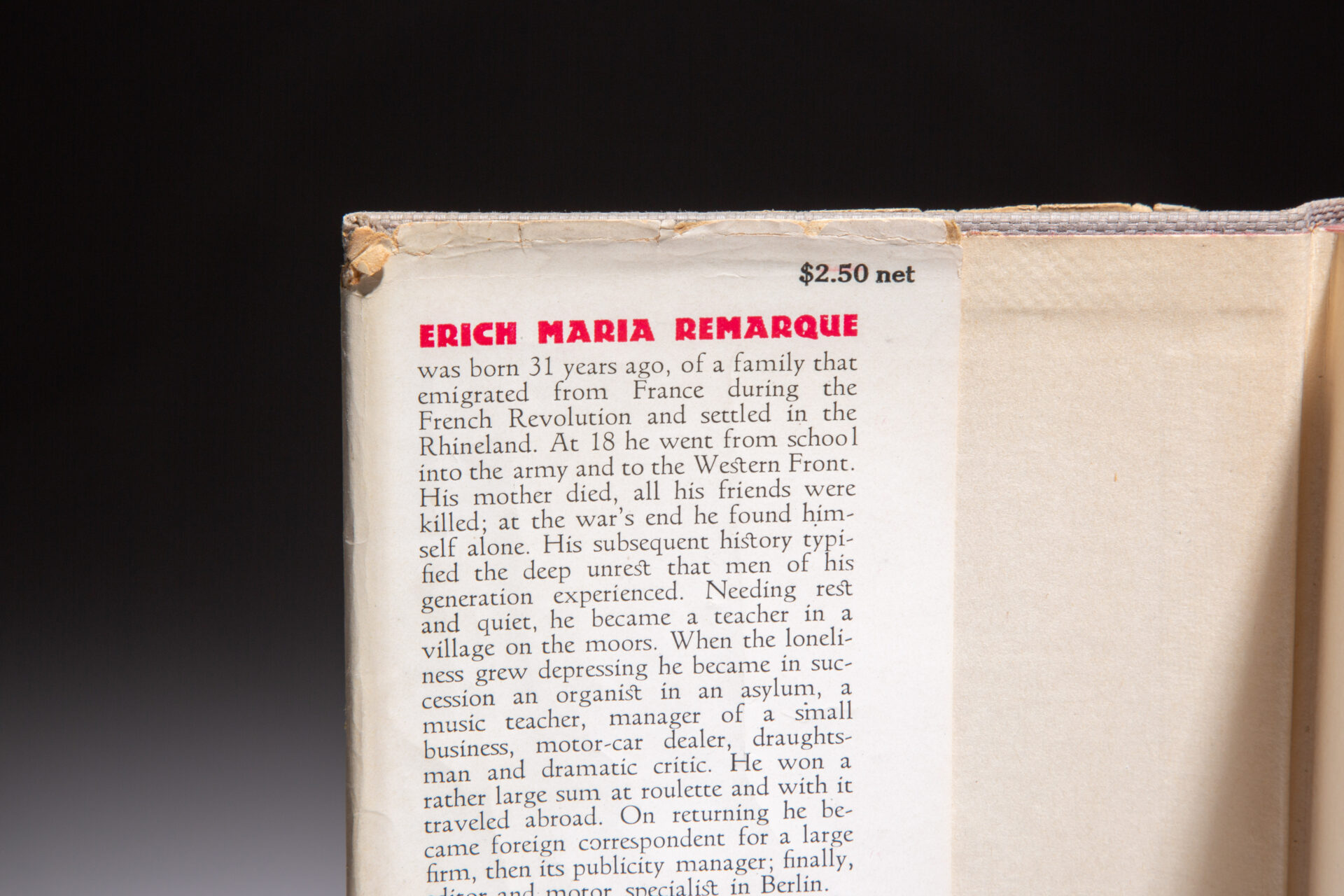 First edition of All Quiet on the Western Front by Erich Maria Remarque, in dust jacket.