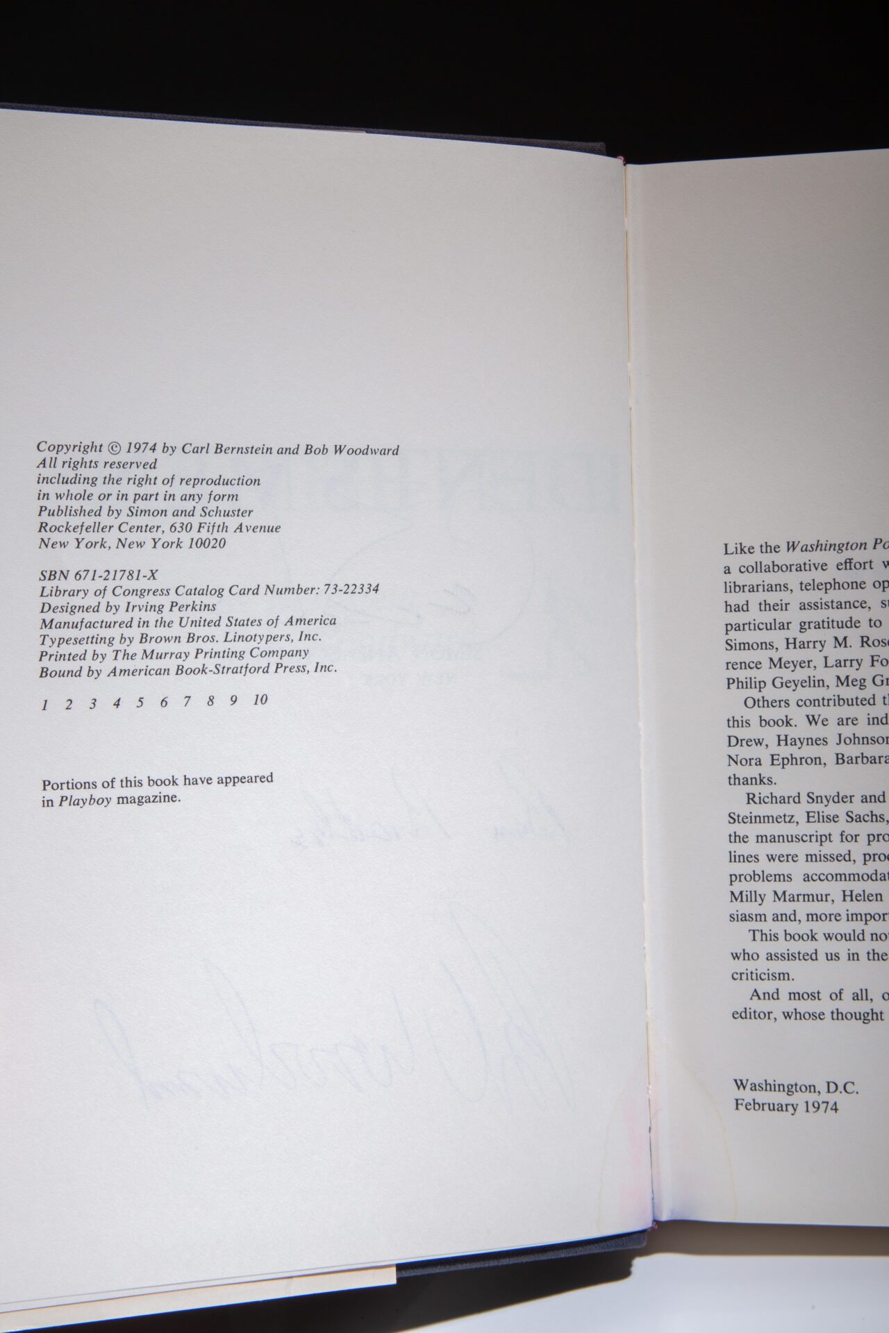 Signed on the title page by Bob Woodward, Carl Bernstein, and Ben Bradlee.