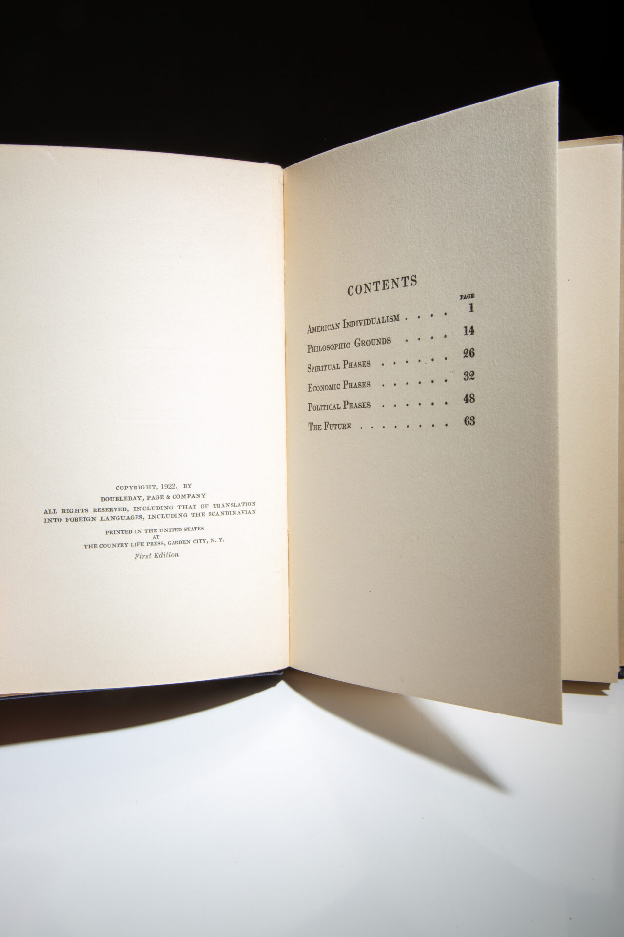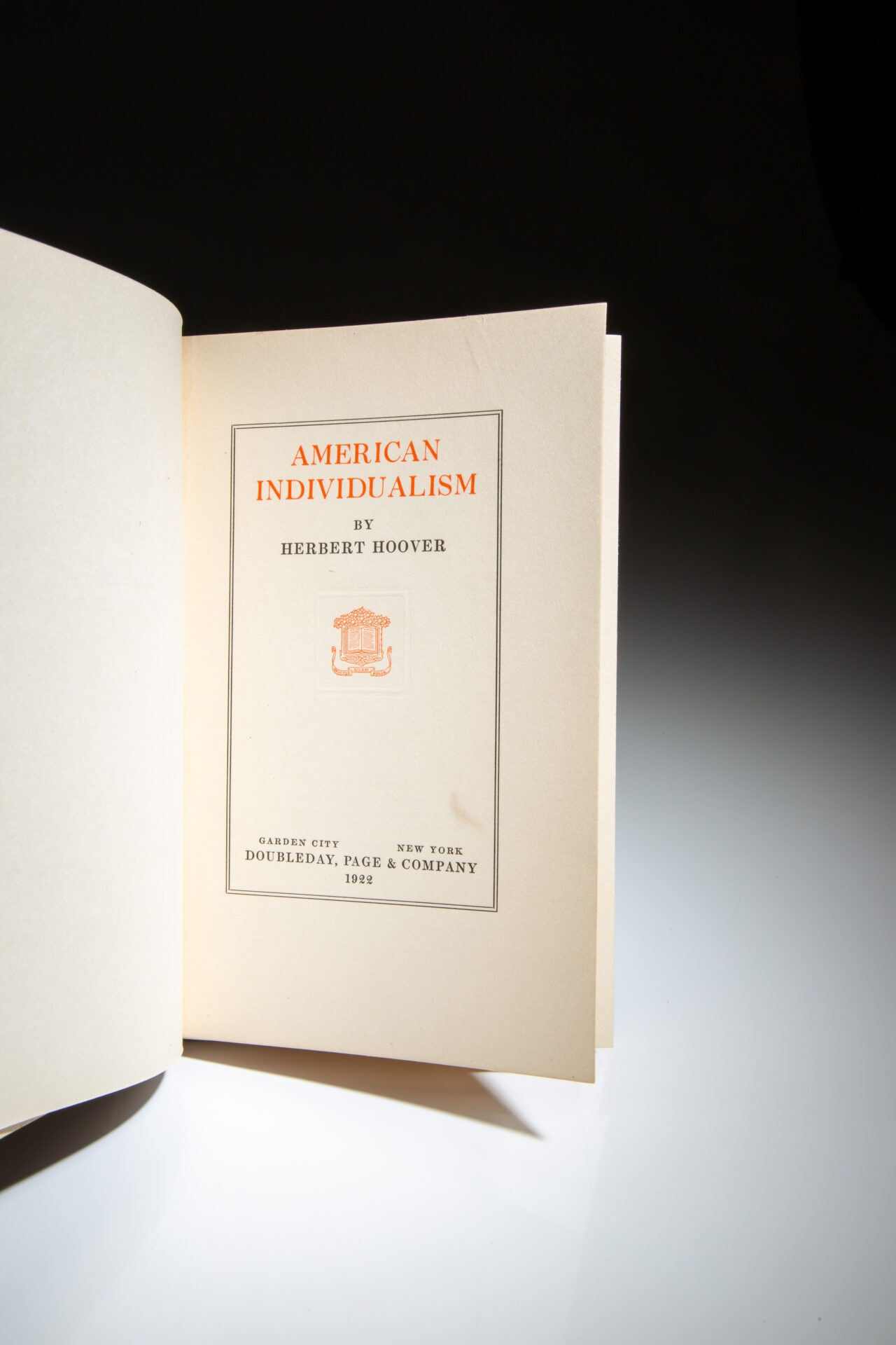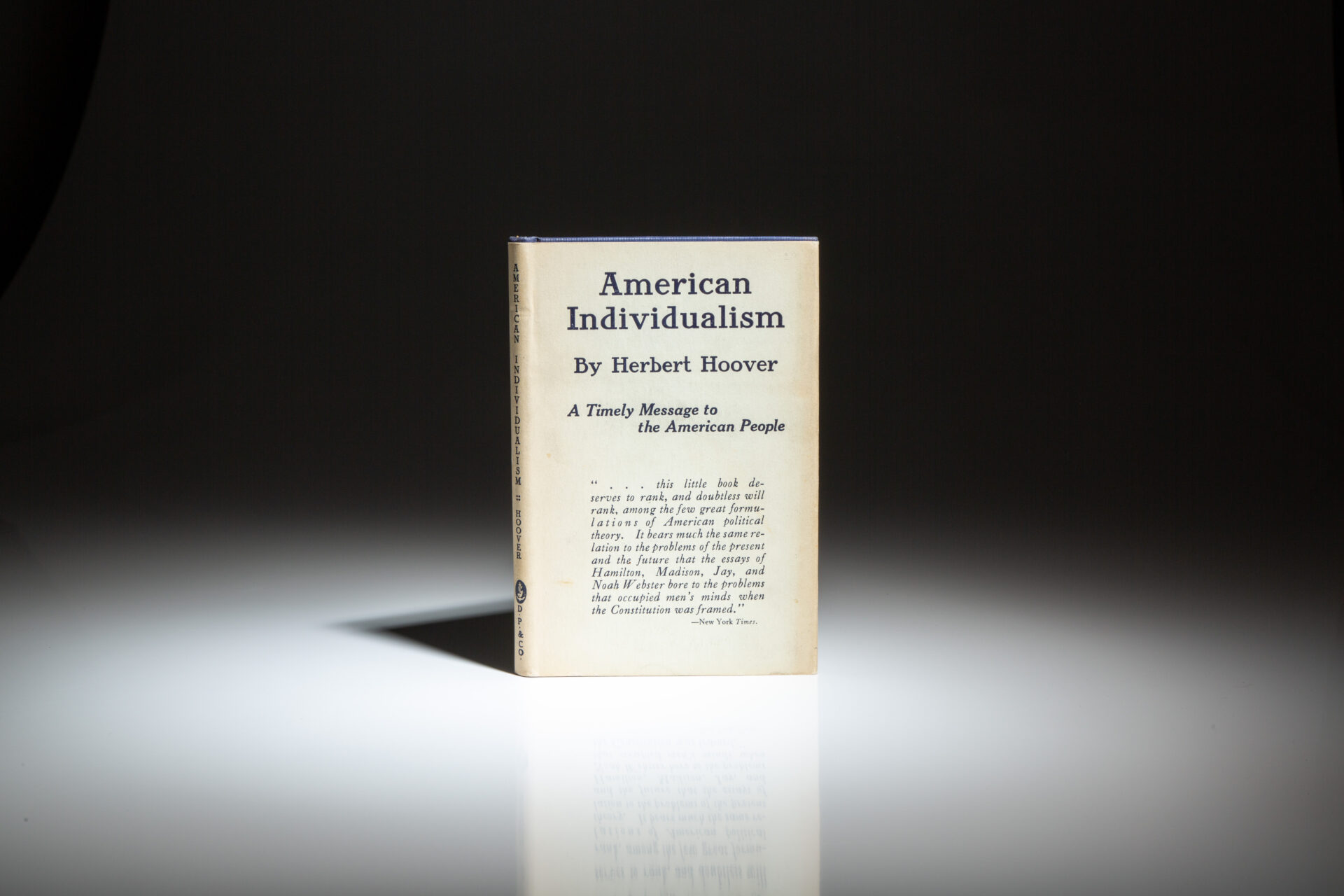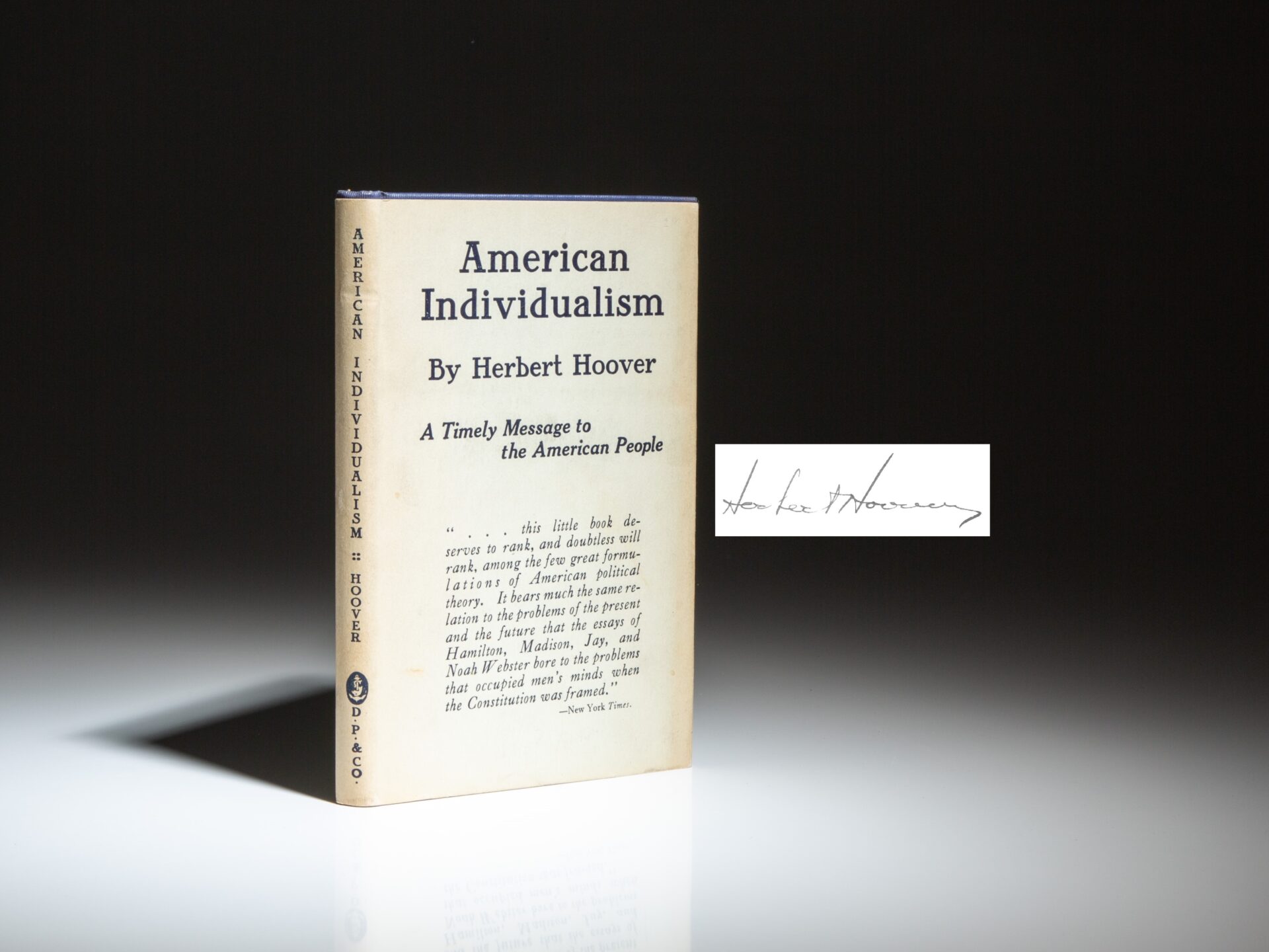 The signed first edition of American Individualism by Herbert Hoover, in the publisher’s scarce dust jacket.