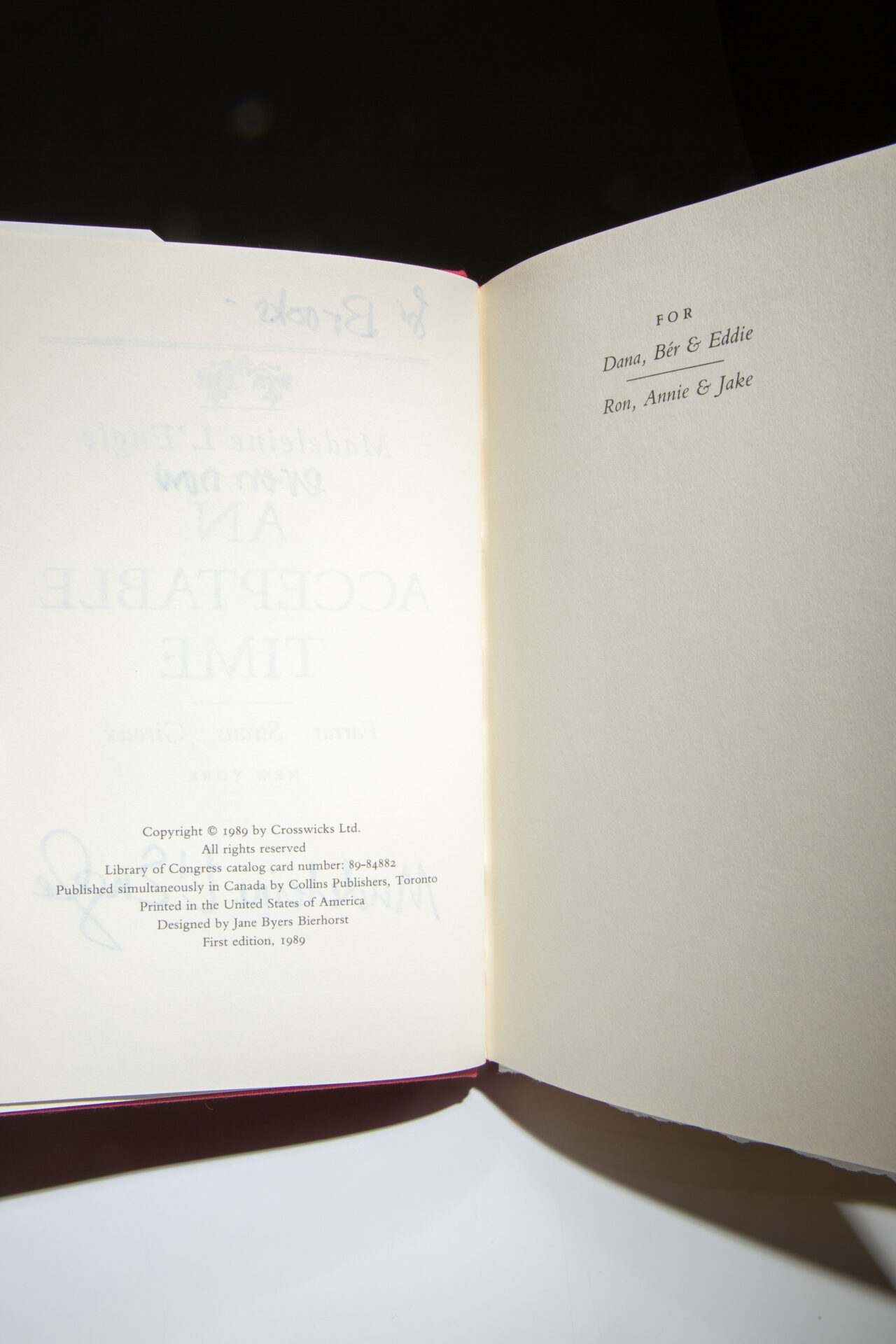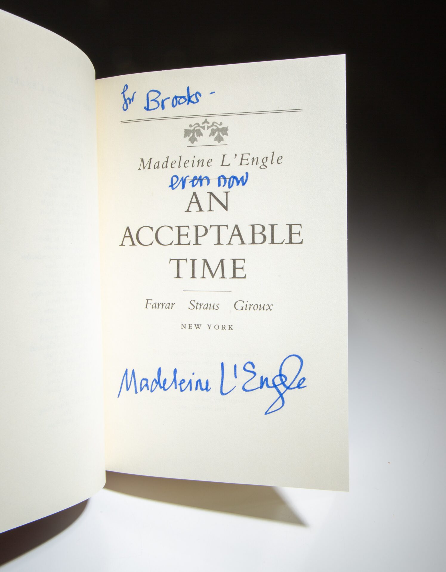 Signed first edition of An Acceptable Time by Madeleine L’Engle, the final work in her “Time Quintet.”