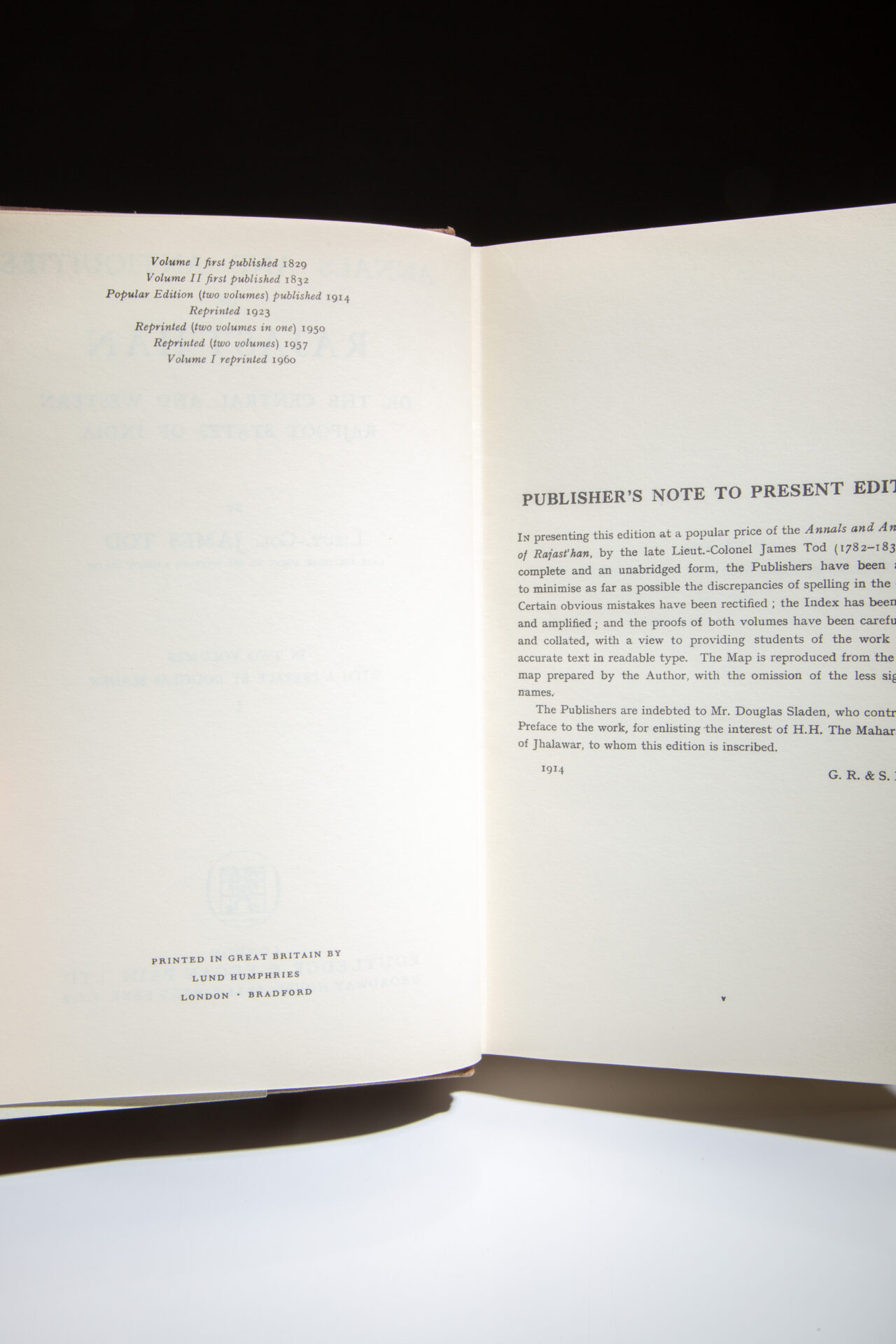 The New Impression of The Annals and Antiquities of Rajast’han by Lieut. – Col. James Tod, reprinted in 1960.