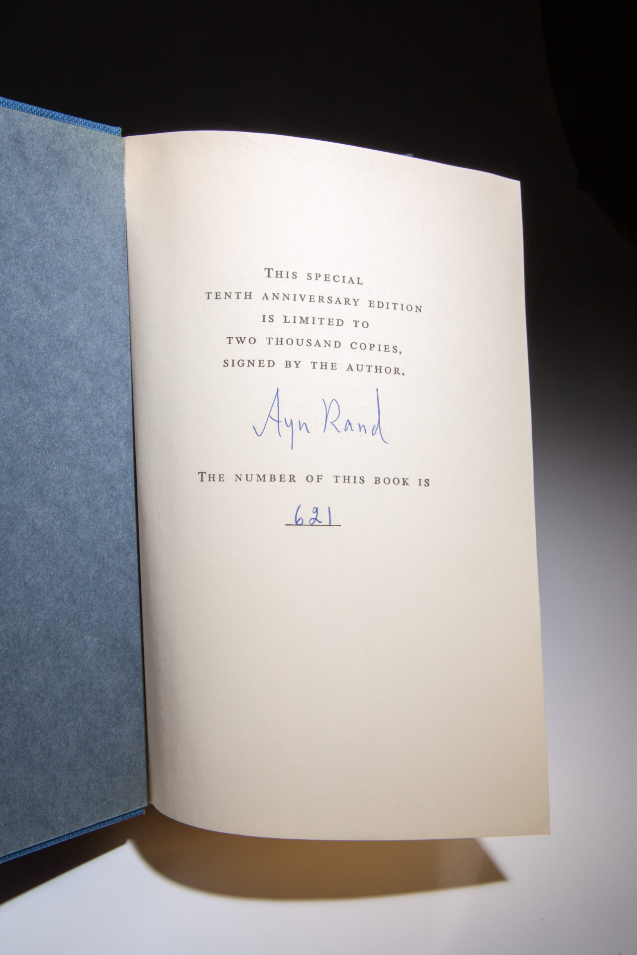 Signed limited edition of Atlas Shrugged by Ayn Rand, produced for the tenth anniversary of the publication.