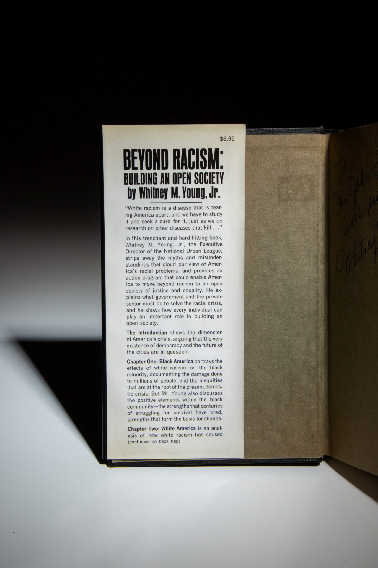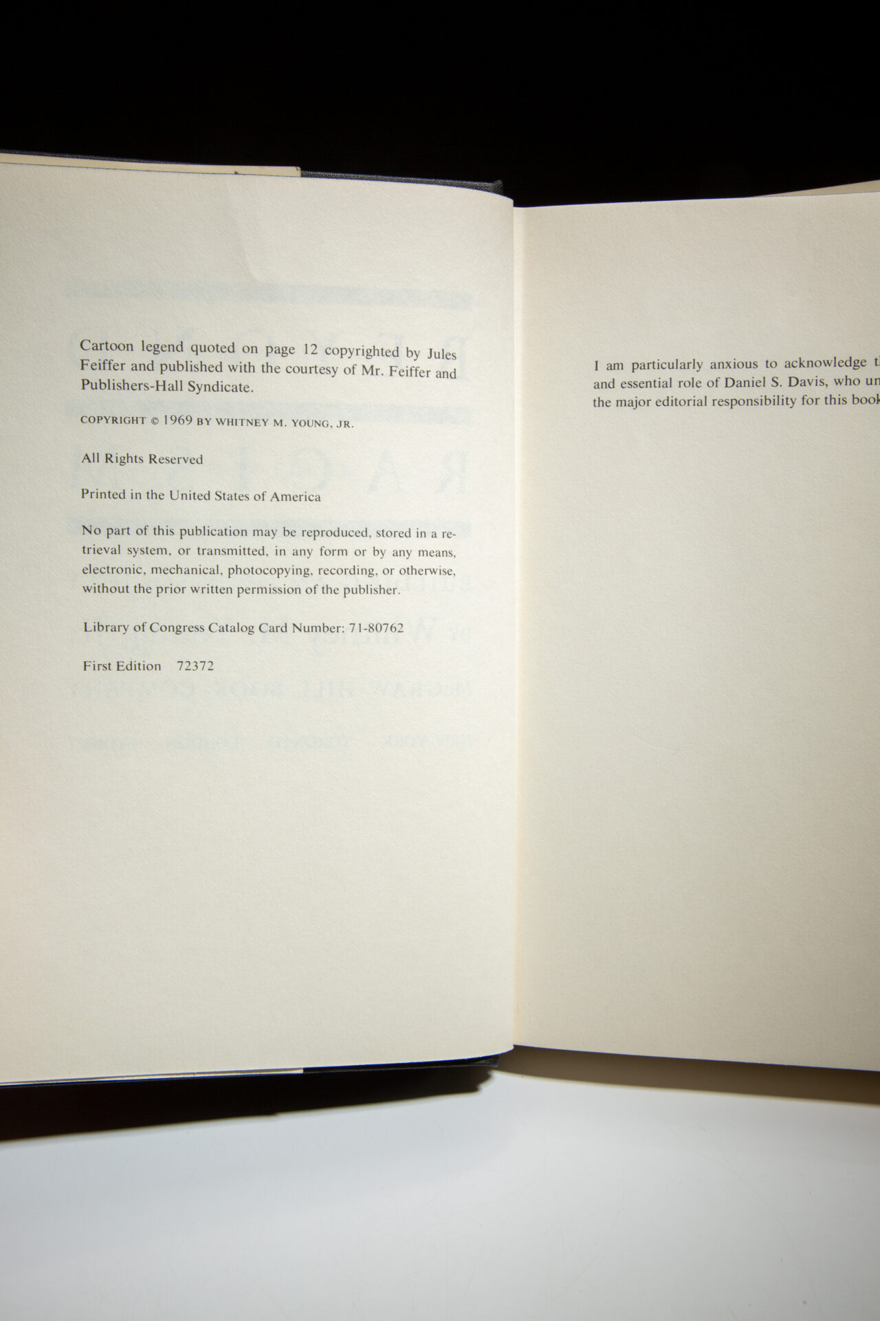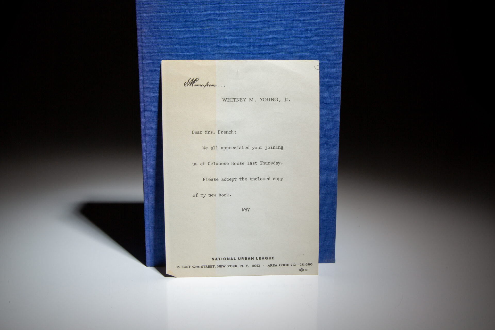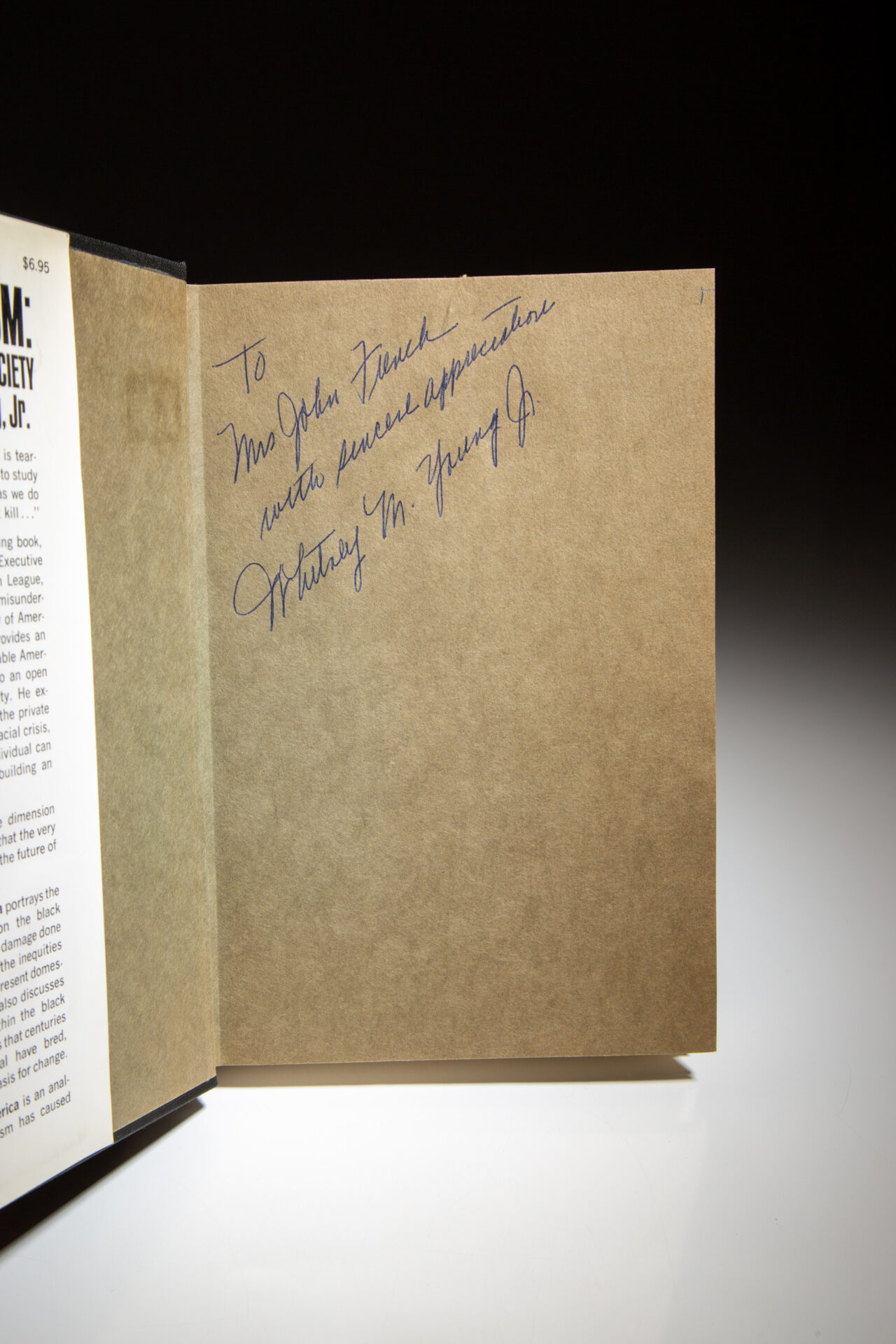Inscribed by the author on the front free endpaper: “To Mrs. John French / with sincere appreciation / Whitney M. Young Jr.”