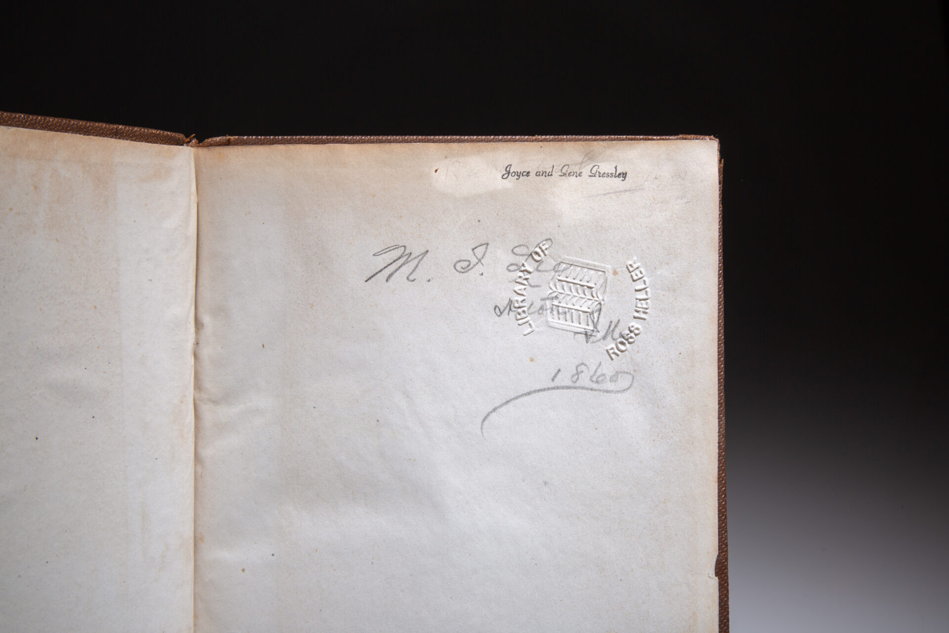 Octavo, [6], 232pp, [2]. Pebbled brown cloth, title in gilt on the spine. Previous ownership stamp on the title page and preface, blindstamp on the front free endpaper. Includes an ownership inscription on the front free endpaper, dated 1860. A few marginalia notes in pencil. Solid text block, text generally clean. Rubbing to cloth, wear at head of the spine.