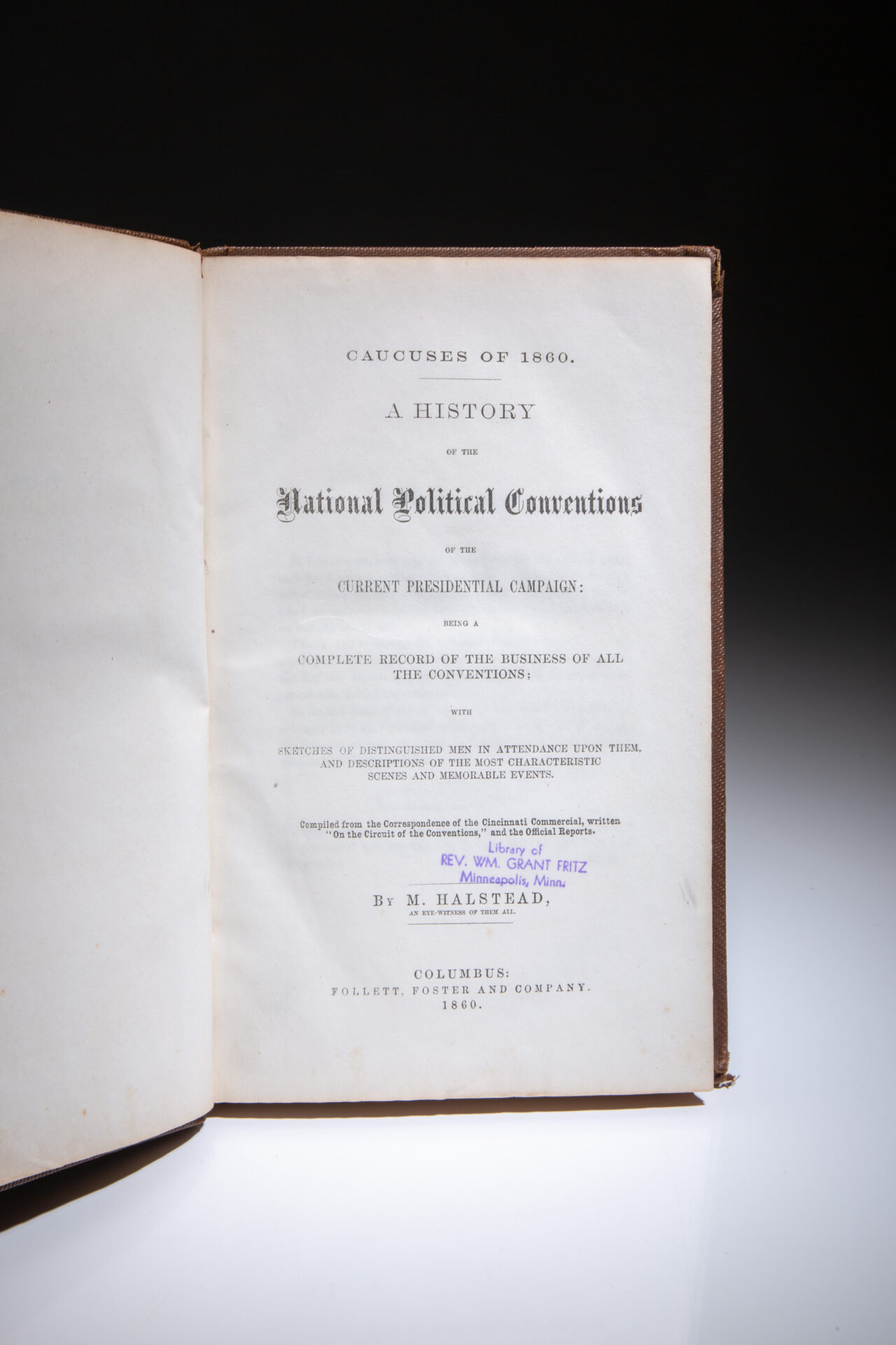 First edition of Caucasus of 1860: A History of the National Political Conventions of the Current Presidential Campaign by Murat Halstead, published in 1860.
