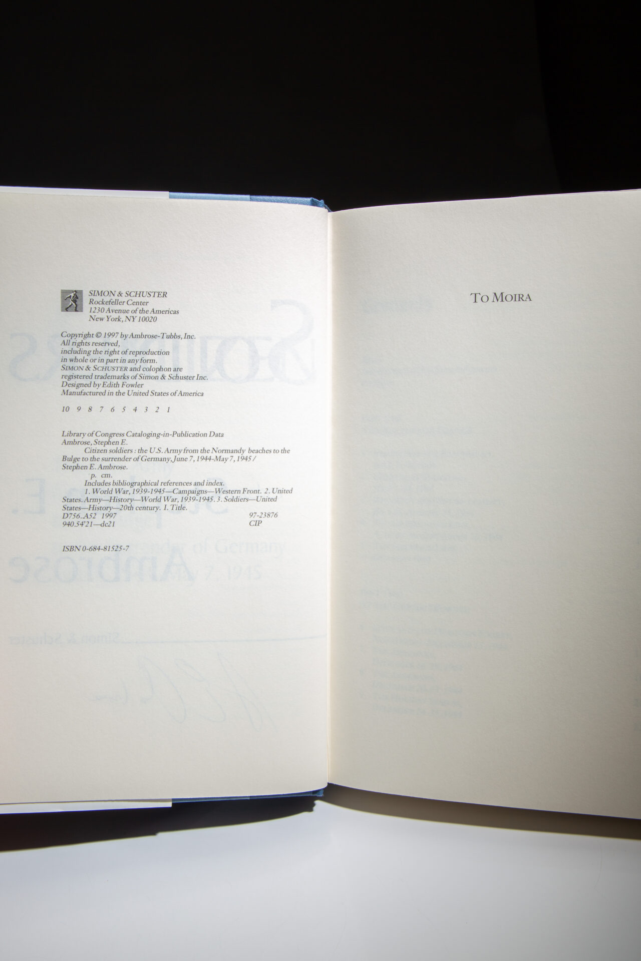 The first edition, first printing of Citizen Soldiers, signed by Stephen E. Ambrose.