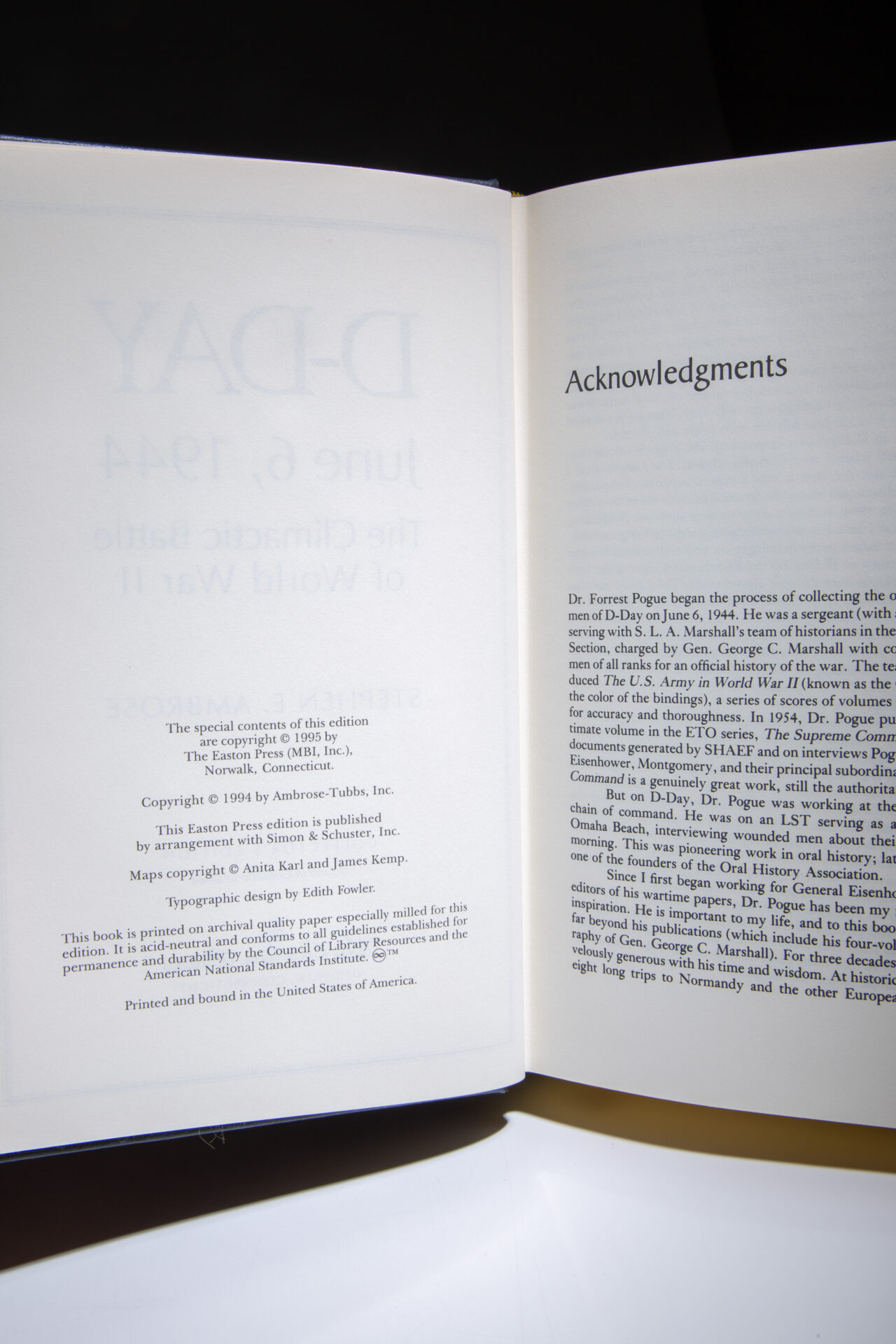 The deluxe signed edition of D-Day June 6, 1944 by Stephen E. Ambrose, from The Easton Press.