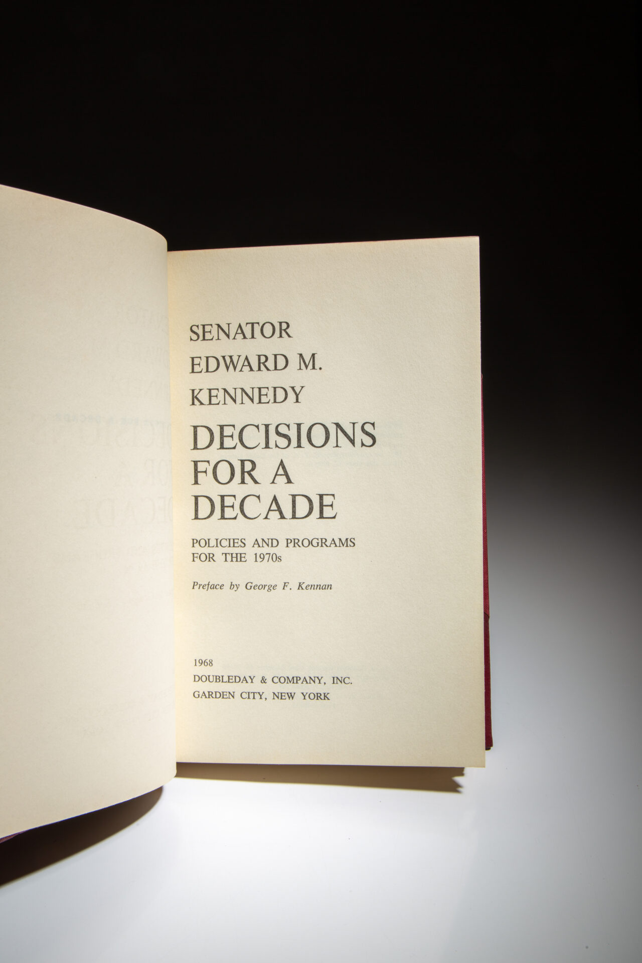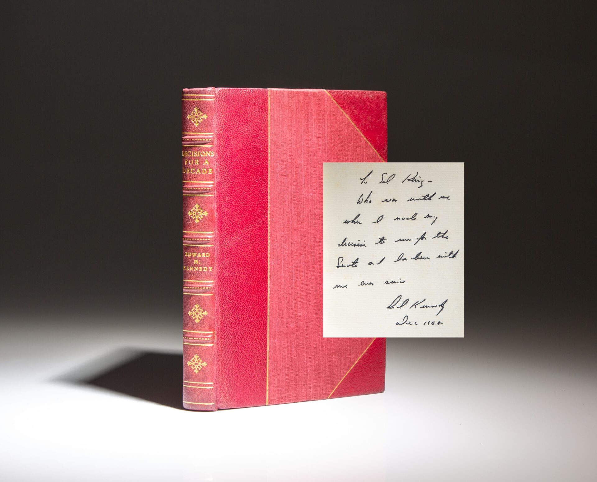 The limited edition of Decisions For A Decade by Senator Edward M. Kennedy, inscribed to a supporter.