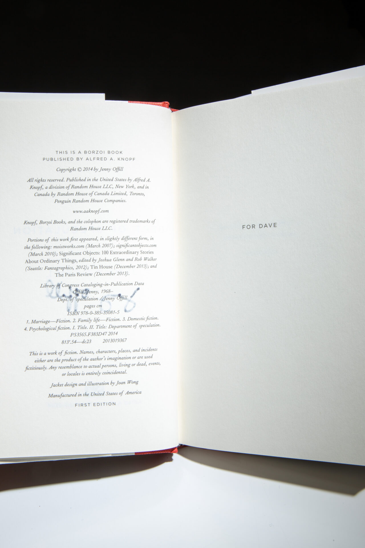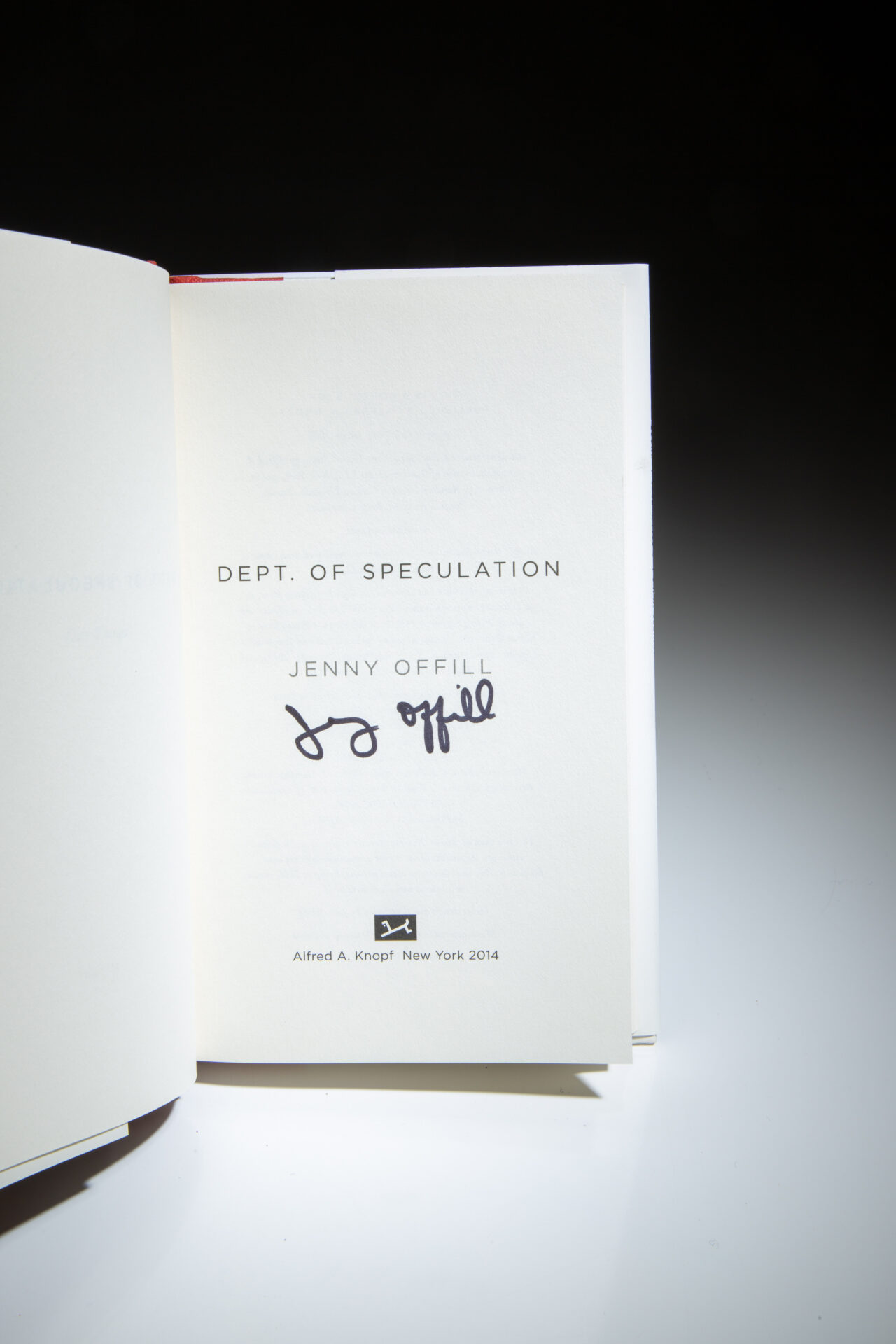 Signed first edition, first printing of Dept. of Speculation by Jenny Offill.