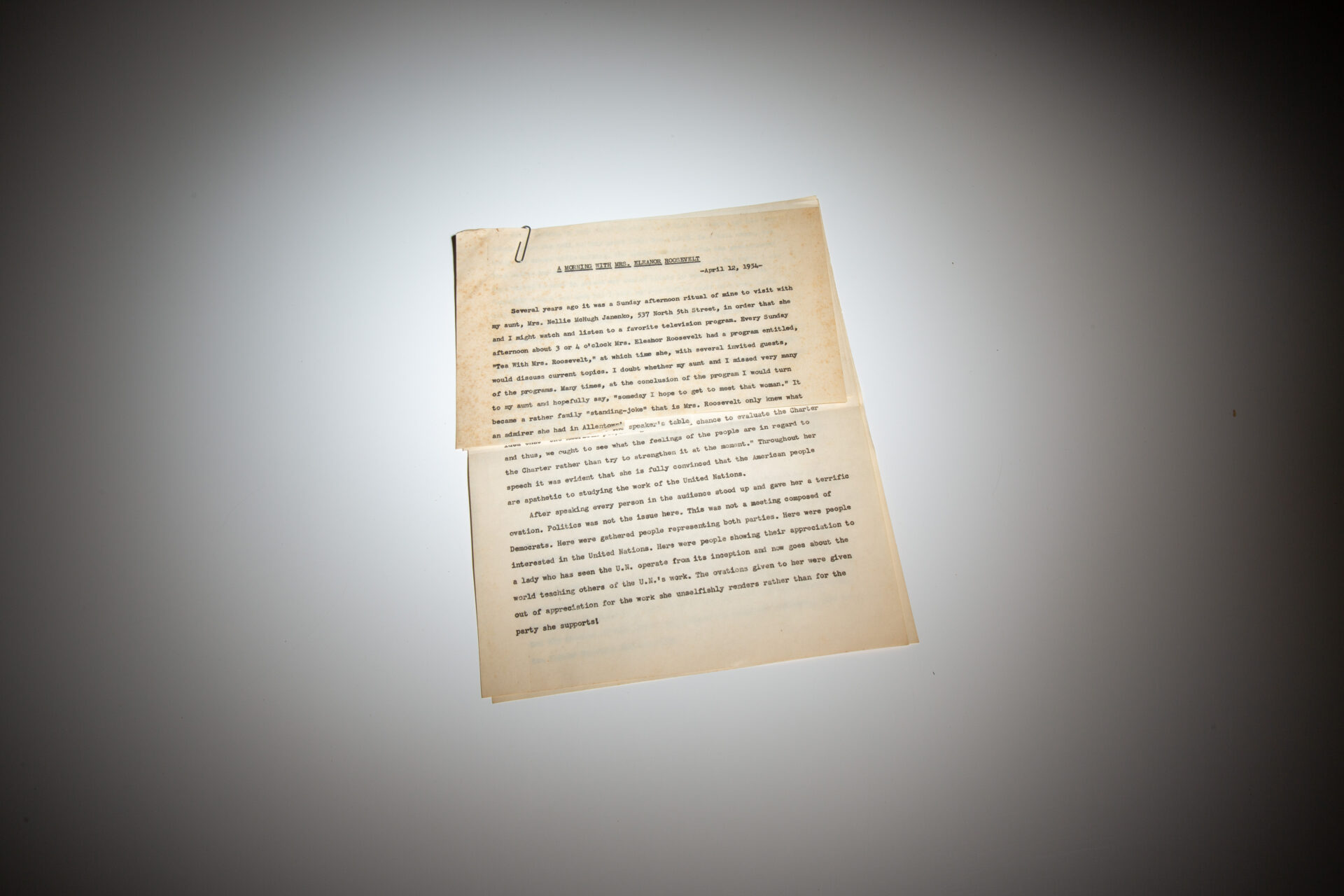 Signed at the Congress Hotel in Chicago, April 12, 1954. This work is accompanied by a full history of the meeting between McHugh and Mrs. Roosevelt in Chicago. The book is also featured in a newspaper article about McHugh’s meeting with Harry Truman and Eleanor Roosevelt in the “The Morning Call,” from Allentown, PA.