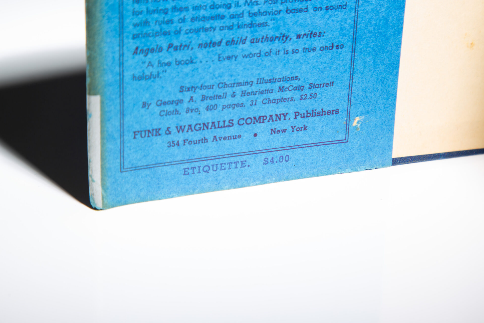 Signed copy of Etiquette: “The Blue Book of Social Usage” by Emily Post, in a scarce dust jacket.