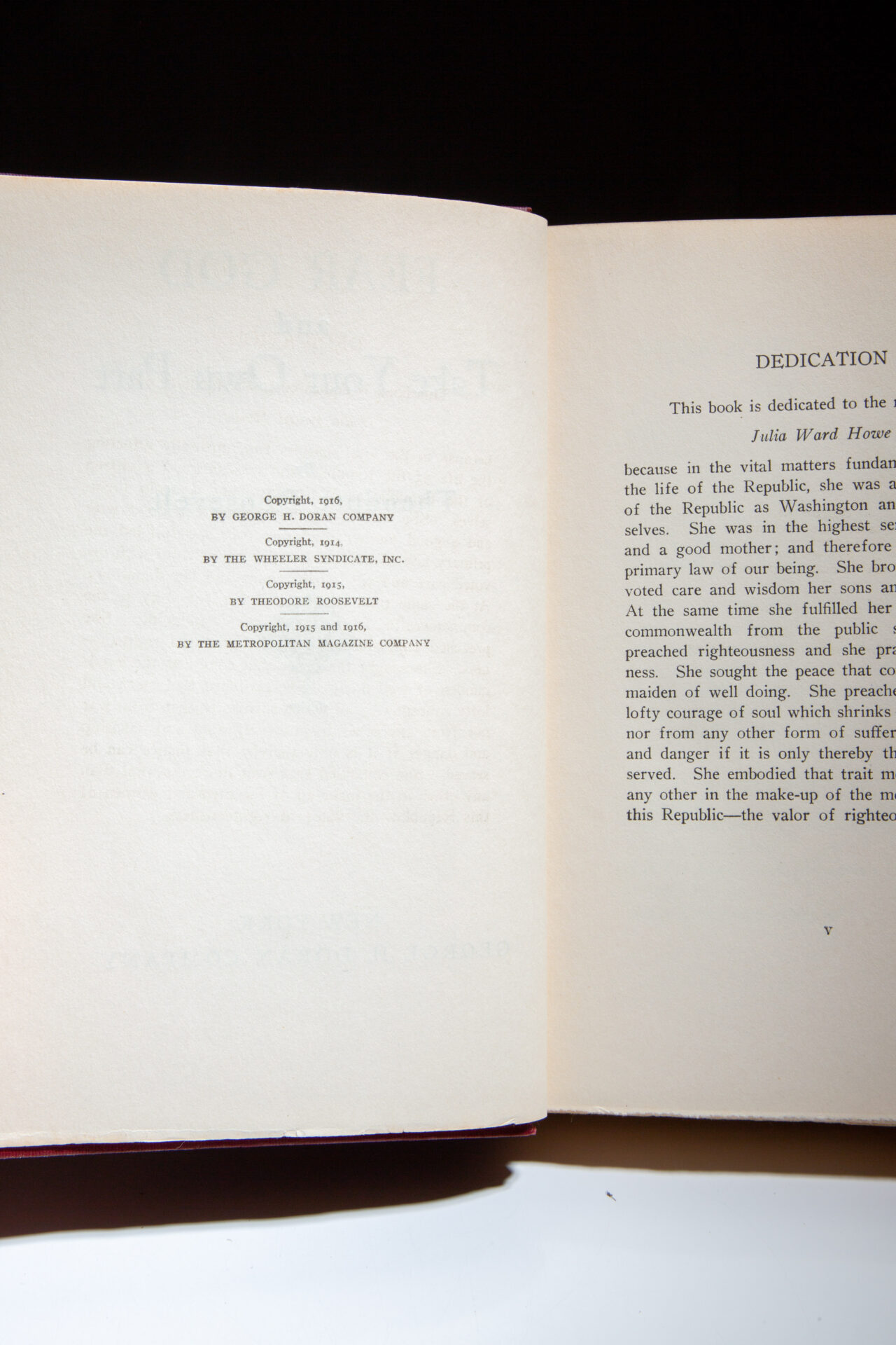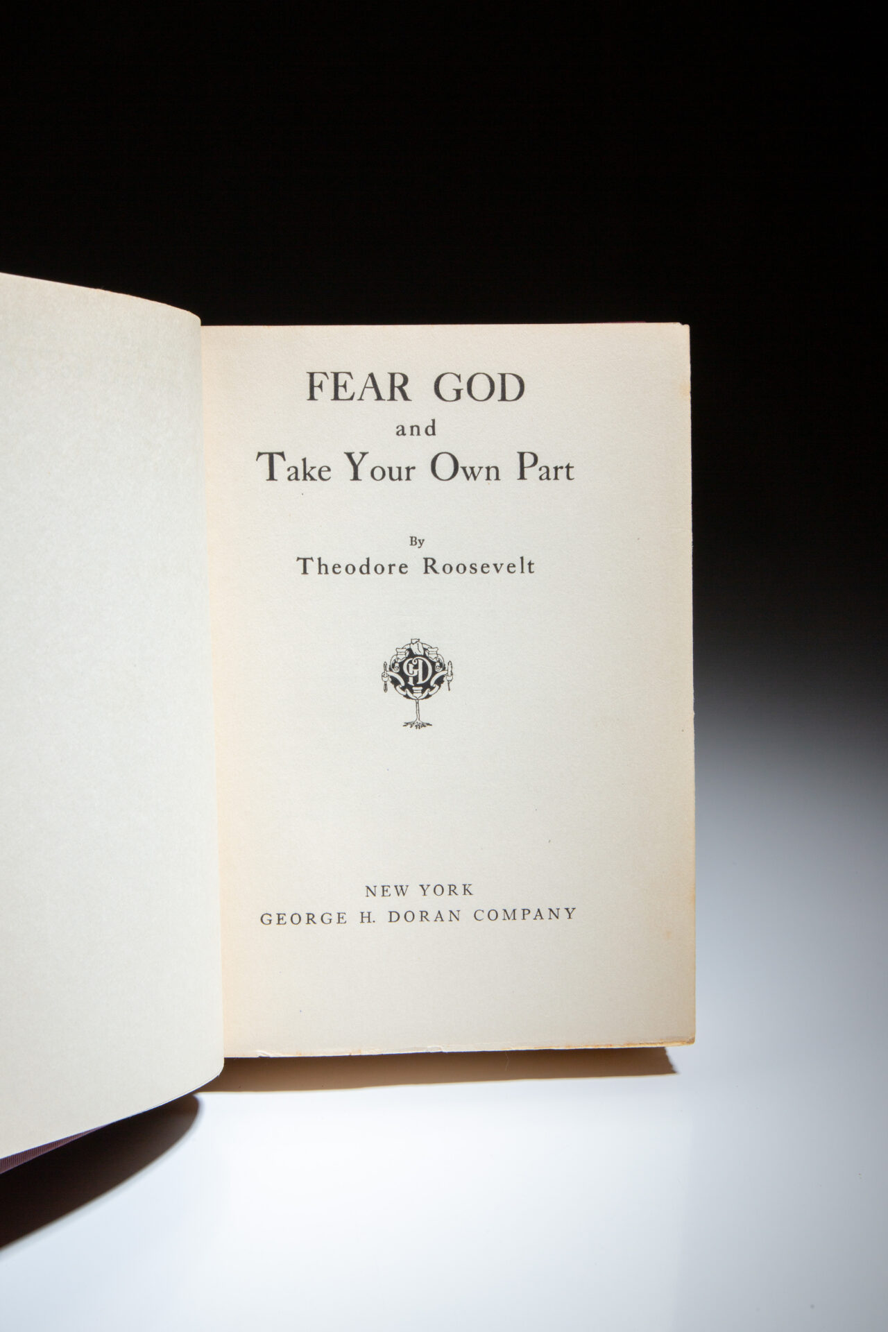 The first edition, first printing of Fear God and Take Your Own Part by Theodore Roosevelt.
