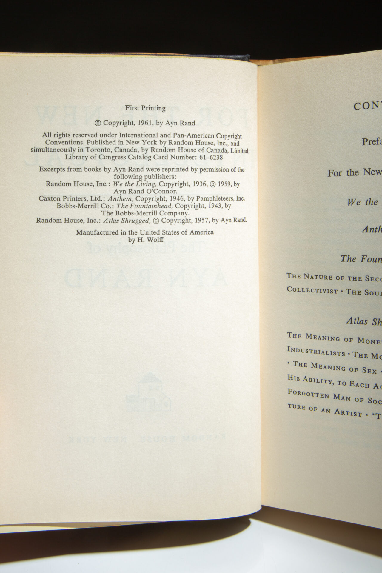 Signed on the half-title by Ayn Rand.
