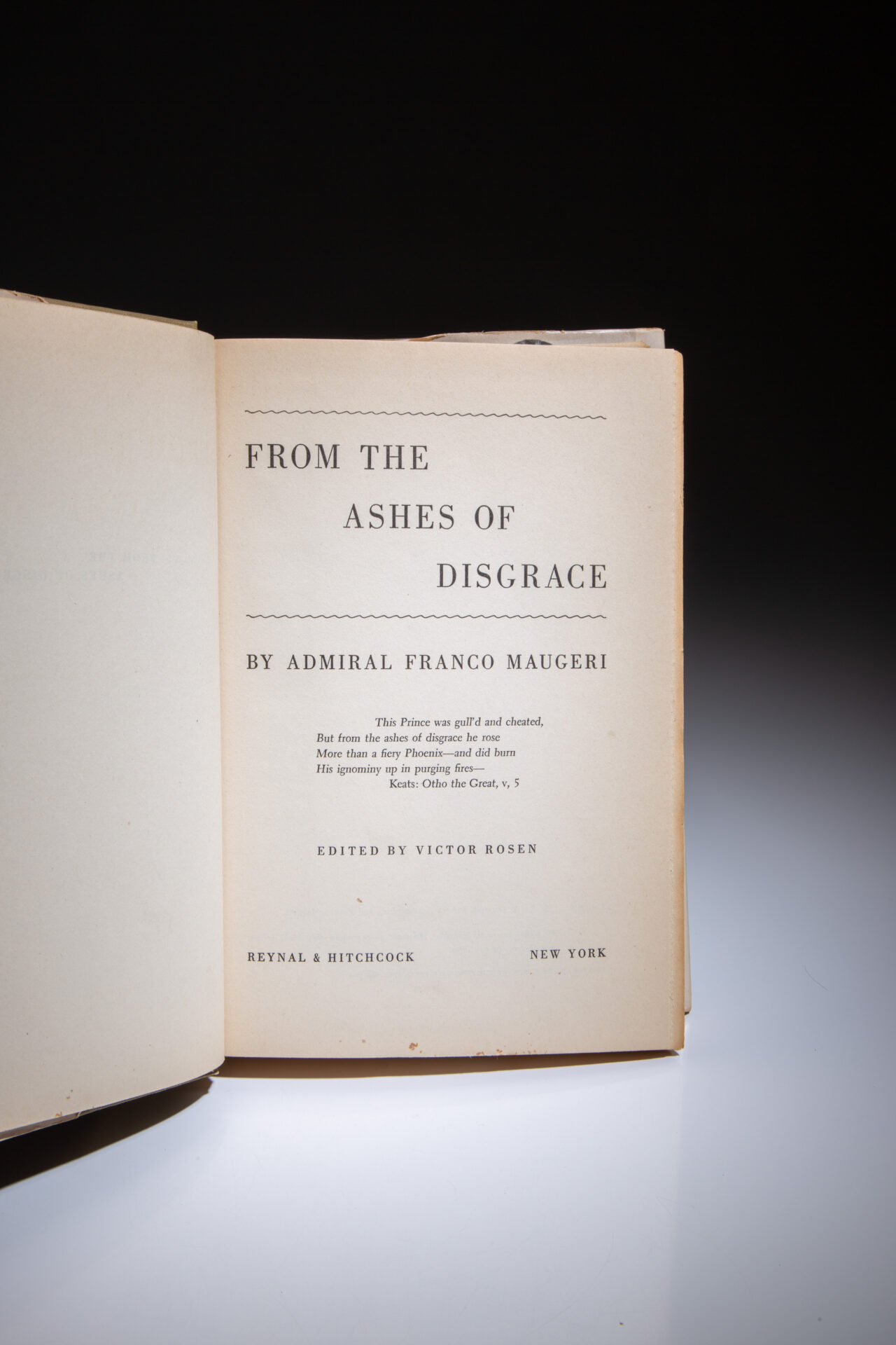 The first edition of From The Ashes Of Disgrace, the memoirs of Admiral Franco Maugeri of Italy.