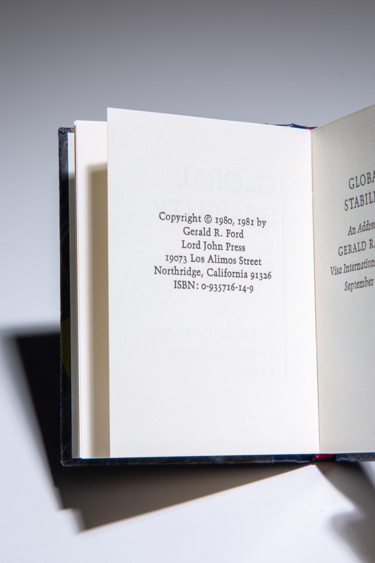 The signed limited edition of Global Stability, an address by President Gerald R. Ford in Quebec on September 8, 1980.
