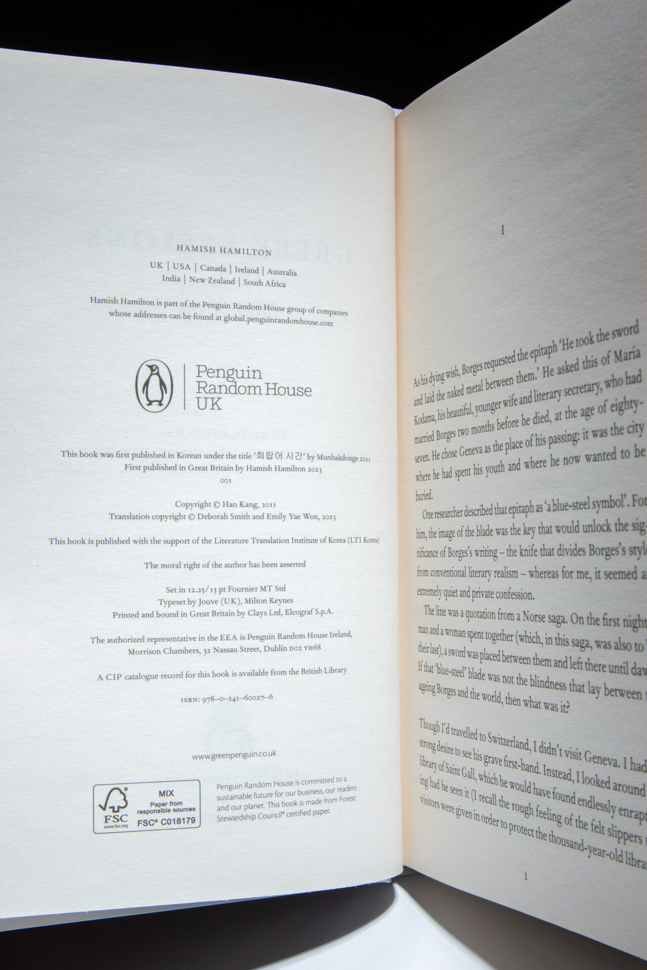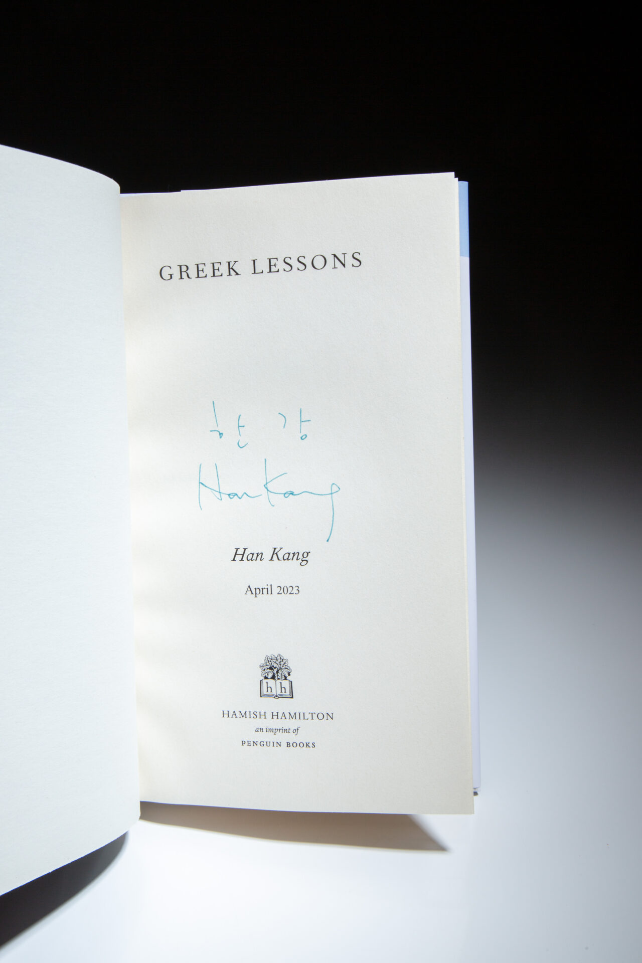 The first edition of Greek Lessons, signed on the publisher’s limitation page by Han Kang.