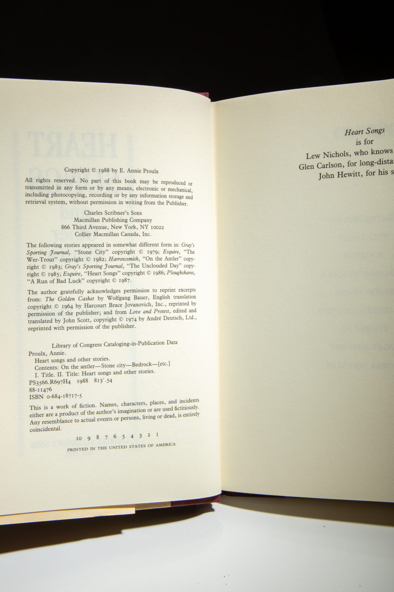 The first edition of Heart Songs and Other Stories by Edna Ann Proulx.