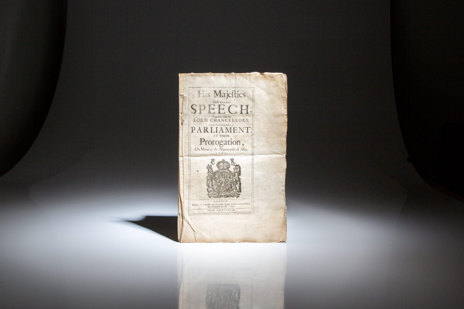 Address in 1675: Delivered on 13 October 1675 – Topics included the European balance of power and urged Parliament to address fiscal shortfalls in order to meet the Crown’s financial obligations.