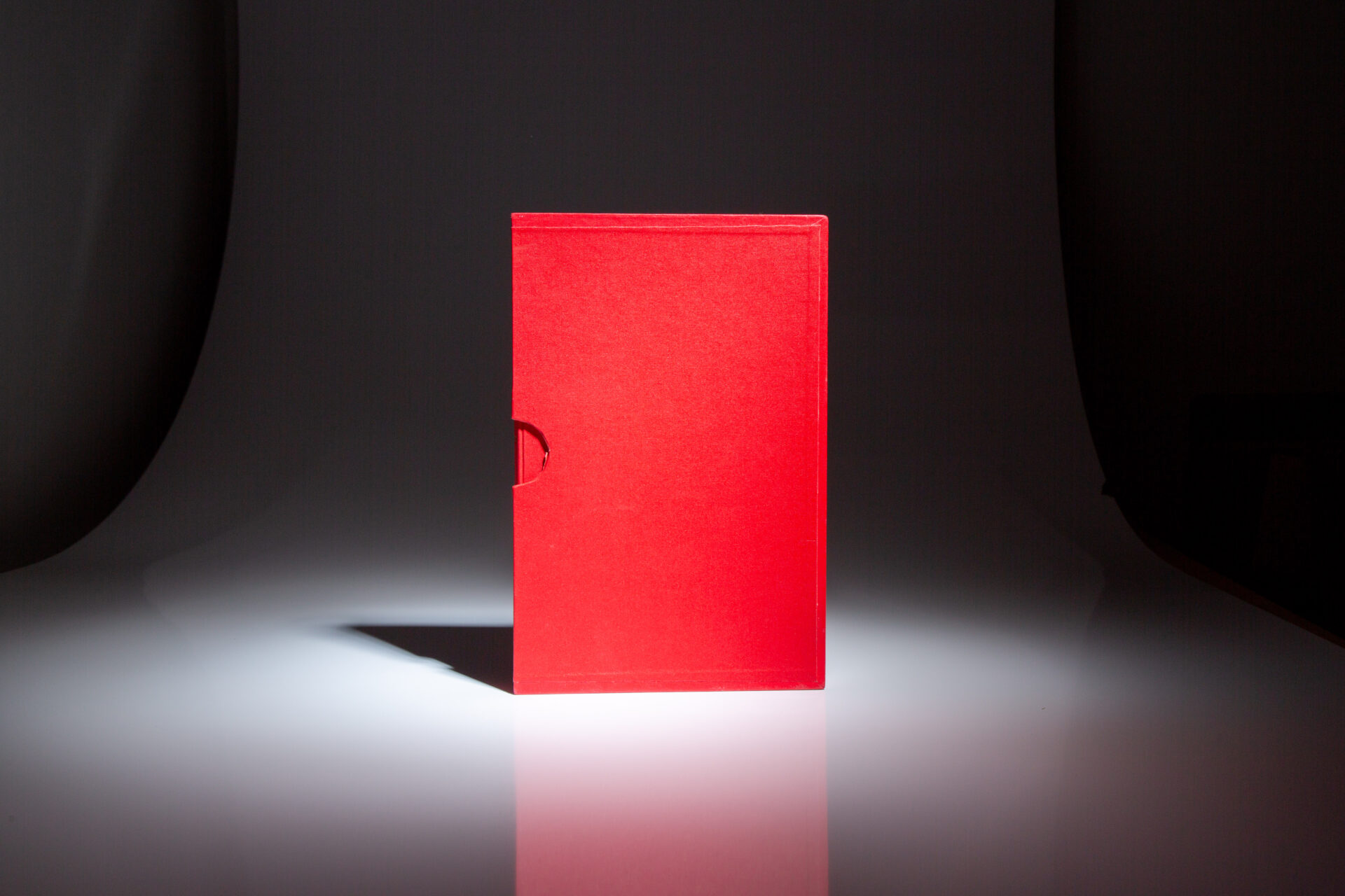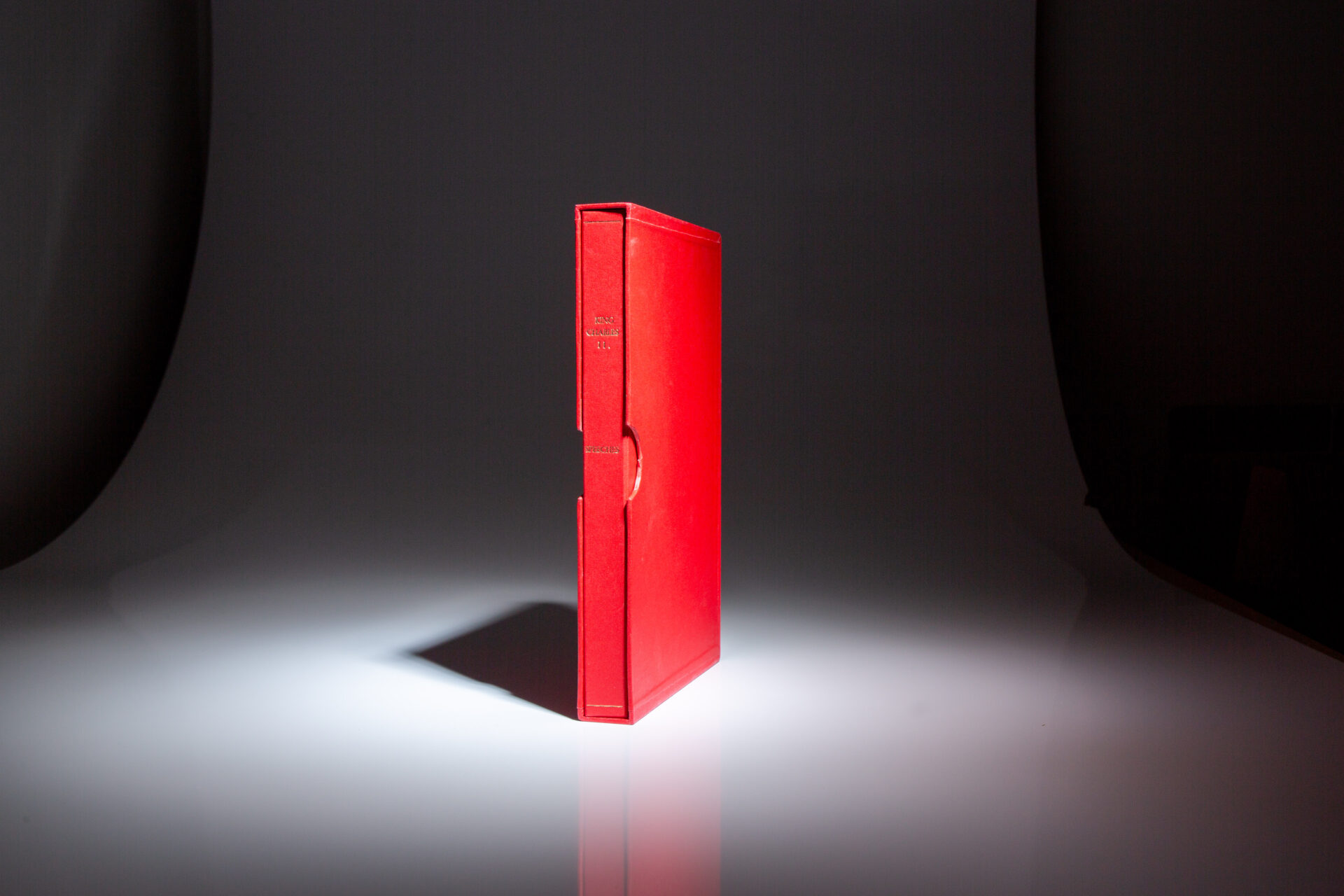 Folio, [four pamphlets], 23pp, [1]; 8pp; 26pp; 12pp. Bound with string, uncut, marginal soiling. Housed in a custom red cloth chemise, title stamped in gilt on the spine, silk ribbon.