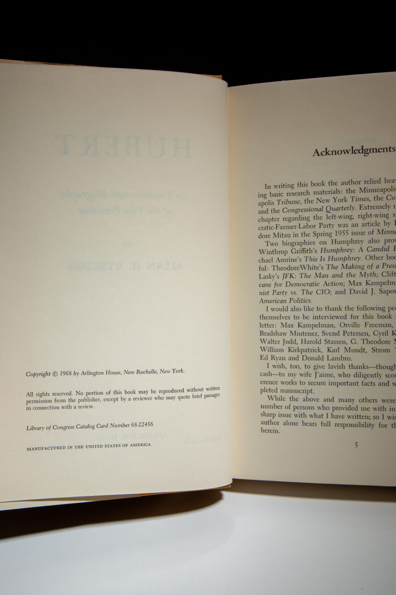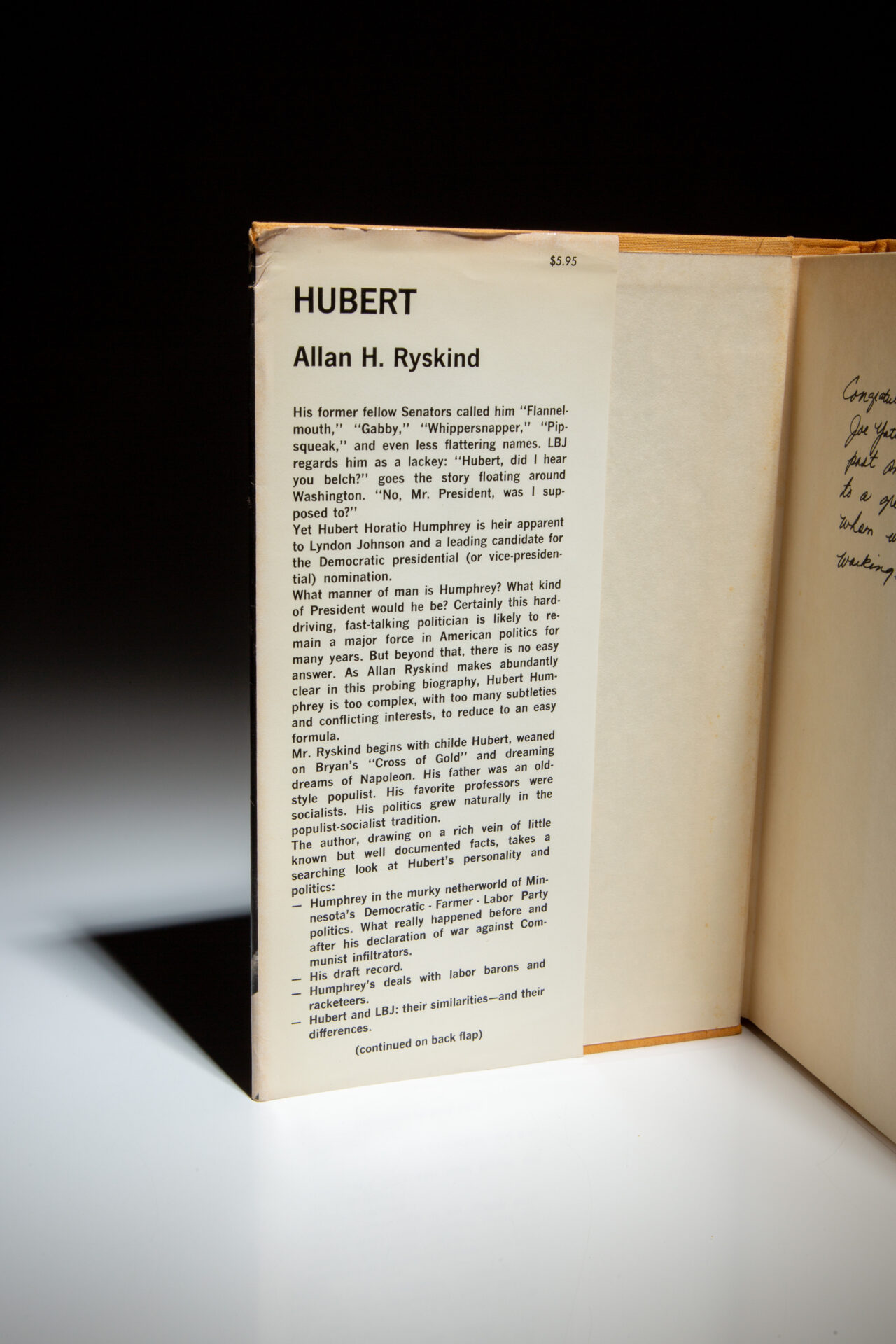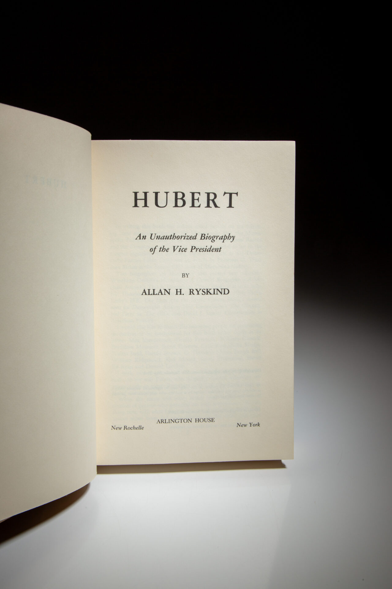 The first edition of Hubert: An Unauthorized Biography of the Vice President by Allan Ryskind, inscribed by Vice President Hubert Humphrey.