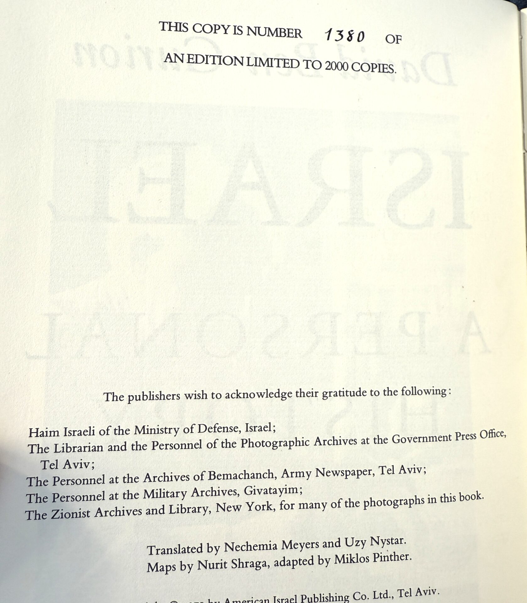 Signed limited edition of Israel: A Personal History by David Ben-Gurion.