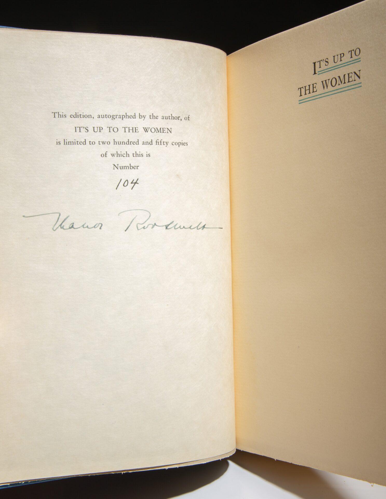 The scarce signed limited edition of It’s Up To The Women, by First Lady Eleanor Roosevelt.