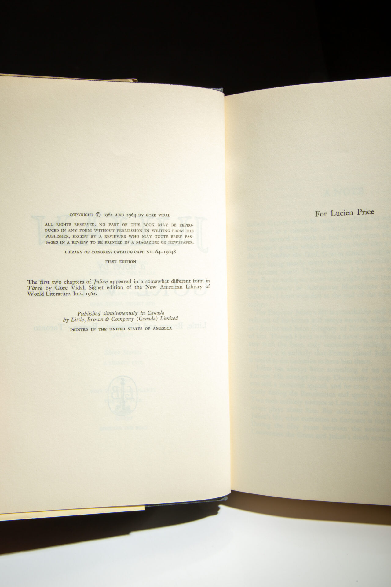 Signed first edition of Julian by Gore Vidal.