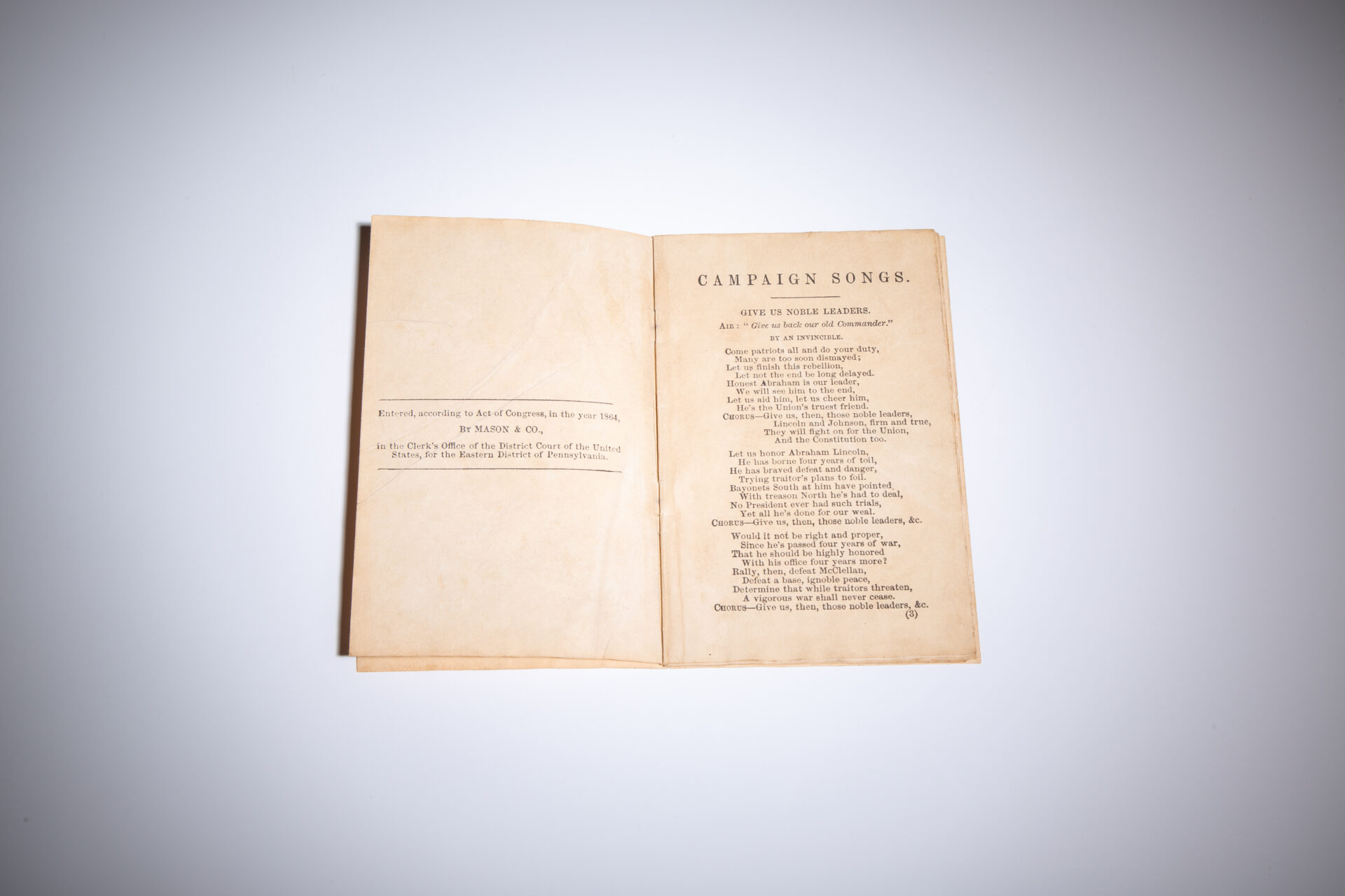 The Lincoln Campaign Songster, published for the 1864 Presidential Campaign by Mason & Company of Philadelphia.
