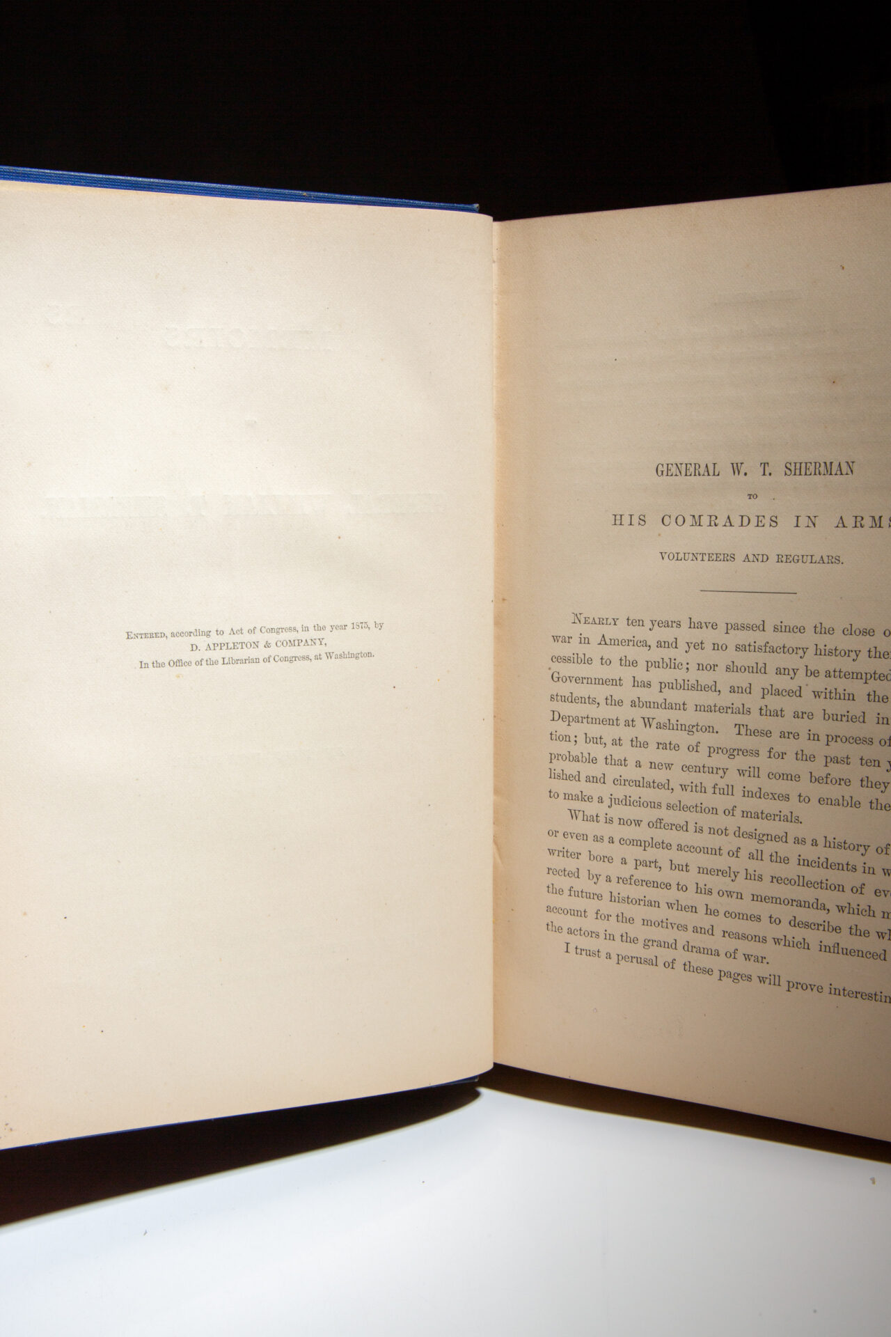 First edition of Memoirs of General William T. Sherman, in scarce blue cloth binding.