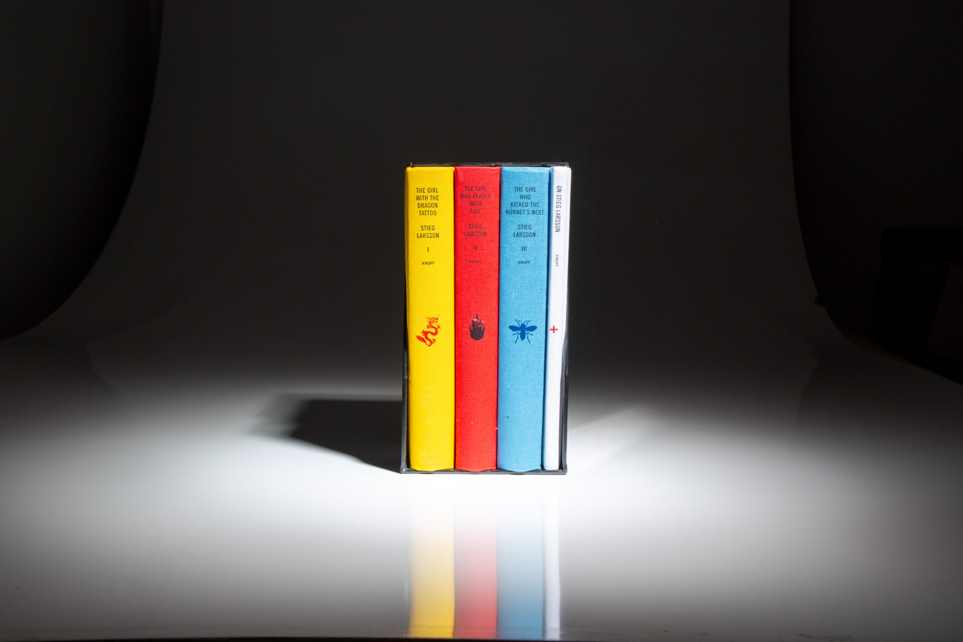 The deluxe boxed edition of Steig Larsson’s Millennium Trilogy, including The Girl with the Dragon Tattoo, The Girl Who Played with Fire, and The Girl Who Knocked the Hornet’s Nest.