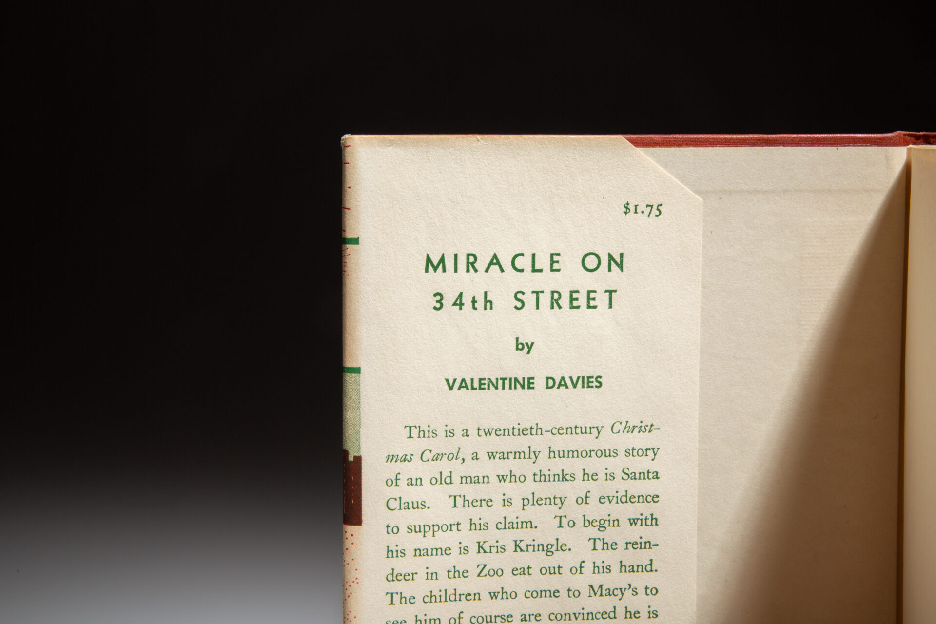 First edition of Miracle on 34th Street by Valentine Davies, in the first state dust jacket.