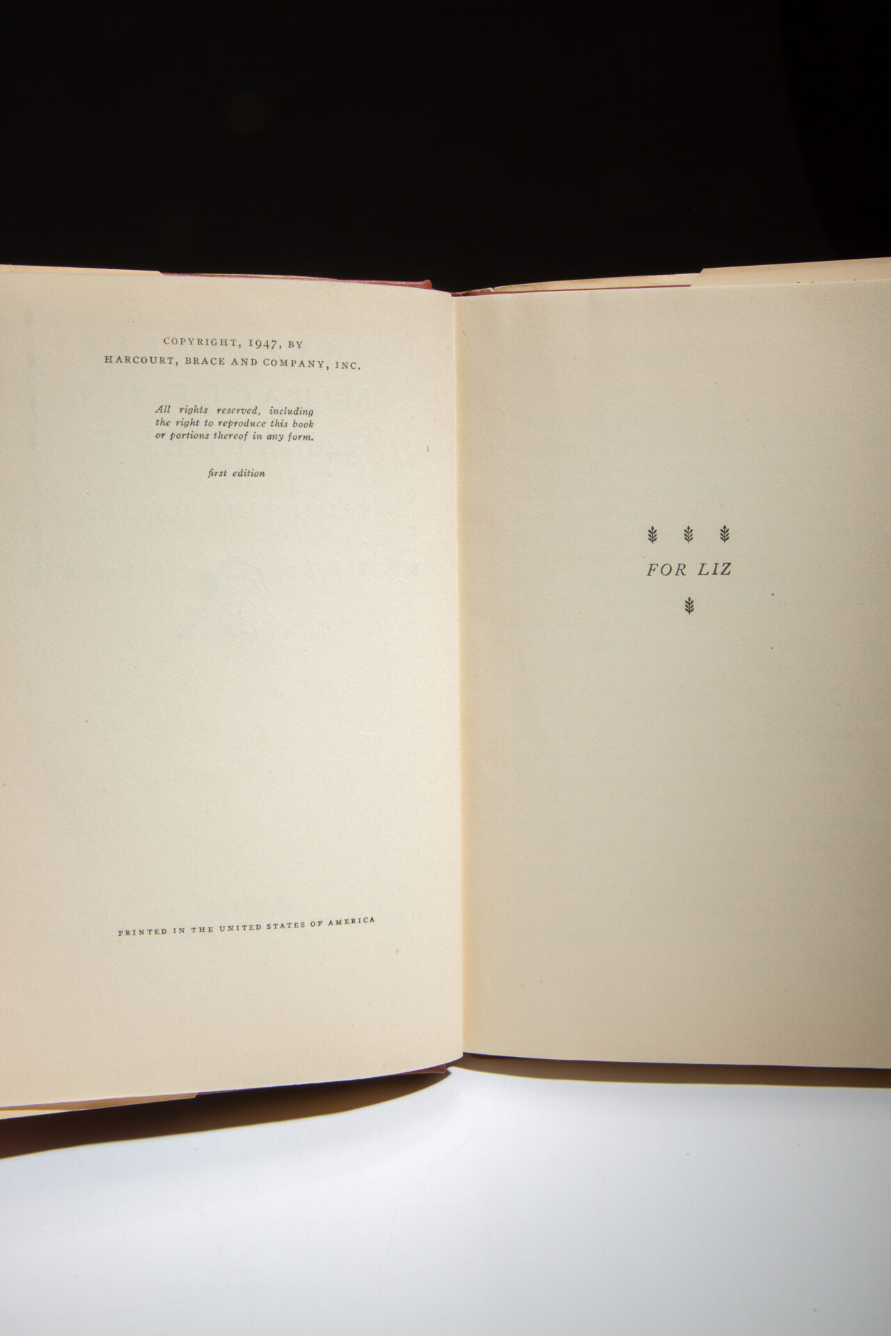 Octavo, [8], 120pp. Maroon cloth, title stamped in silver on spine, image of Santa Claus blind stamped on front cover. Stated “first edition” on copyright page. Free of any marks or notations. In the publisher’s first state dust jacket, $1.75 on front flap, “Double Your Enjoyment” advertisement on the rear panel, almost imperceptible dimple on front panel, near the title.