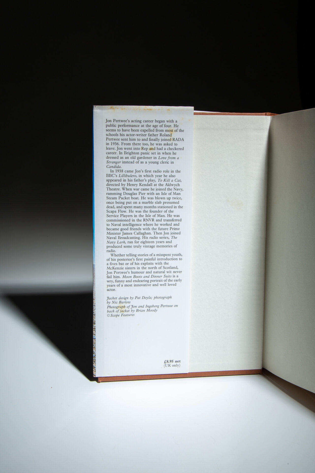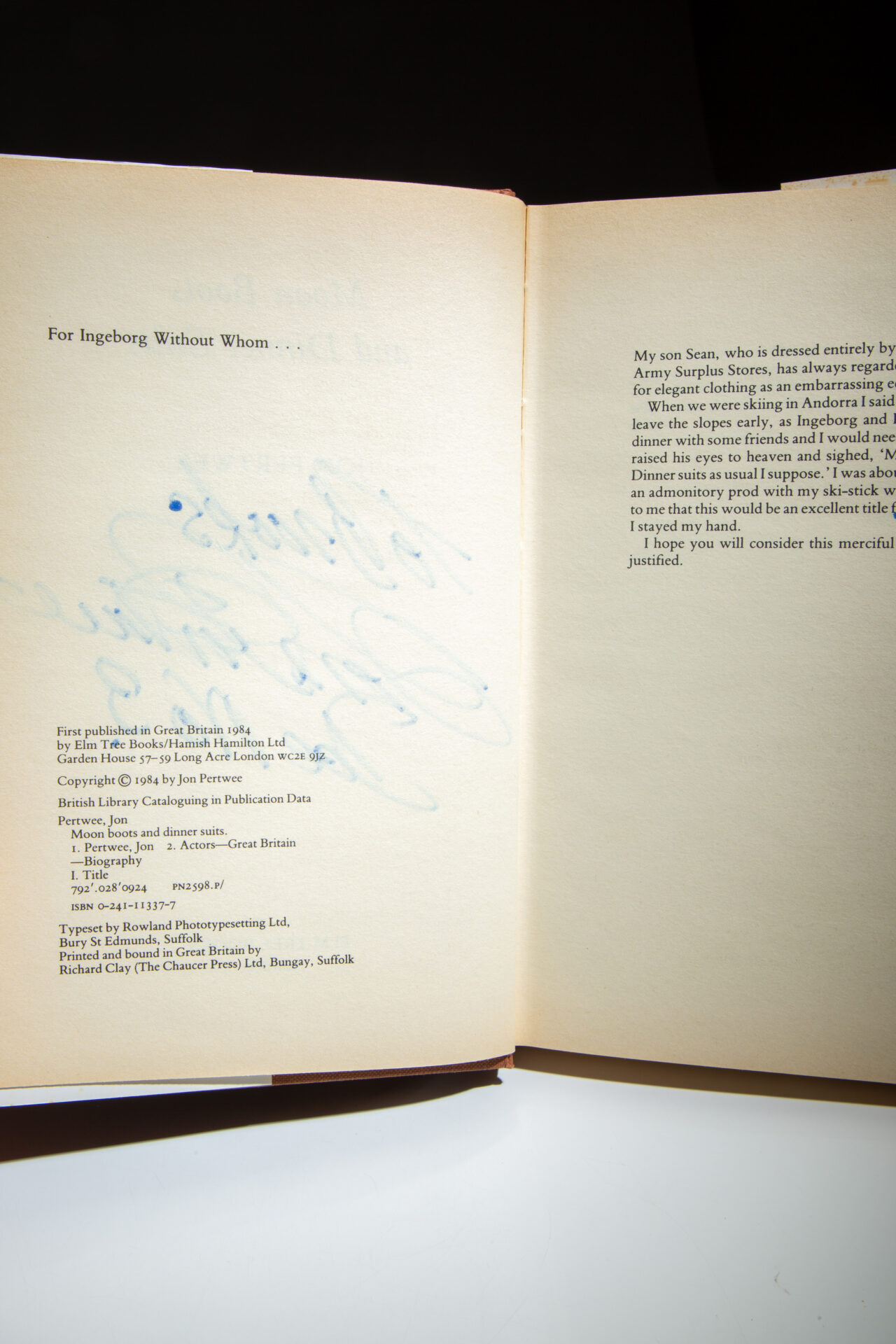 Signed first edition of Moon Boots and Dinner Suits by Jon Pertwee.