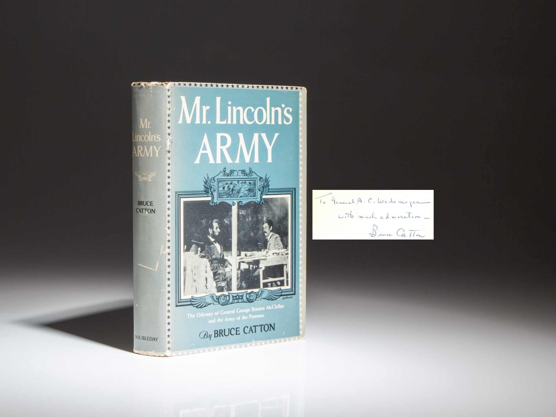 The second printing of Mr. Lincoln’s Army, inscribed by the author, Bruce Catton, to General A.C. Wedemeyer.