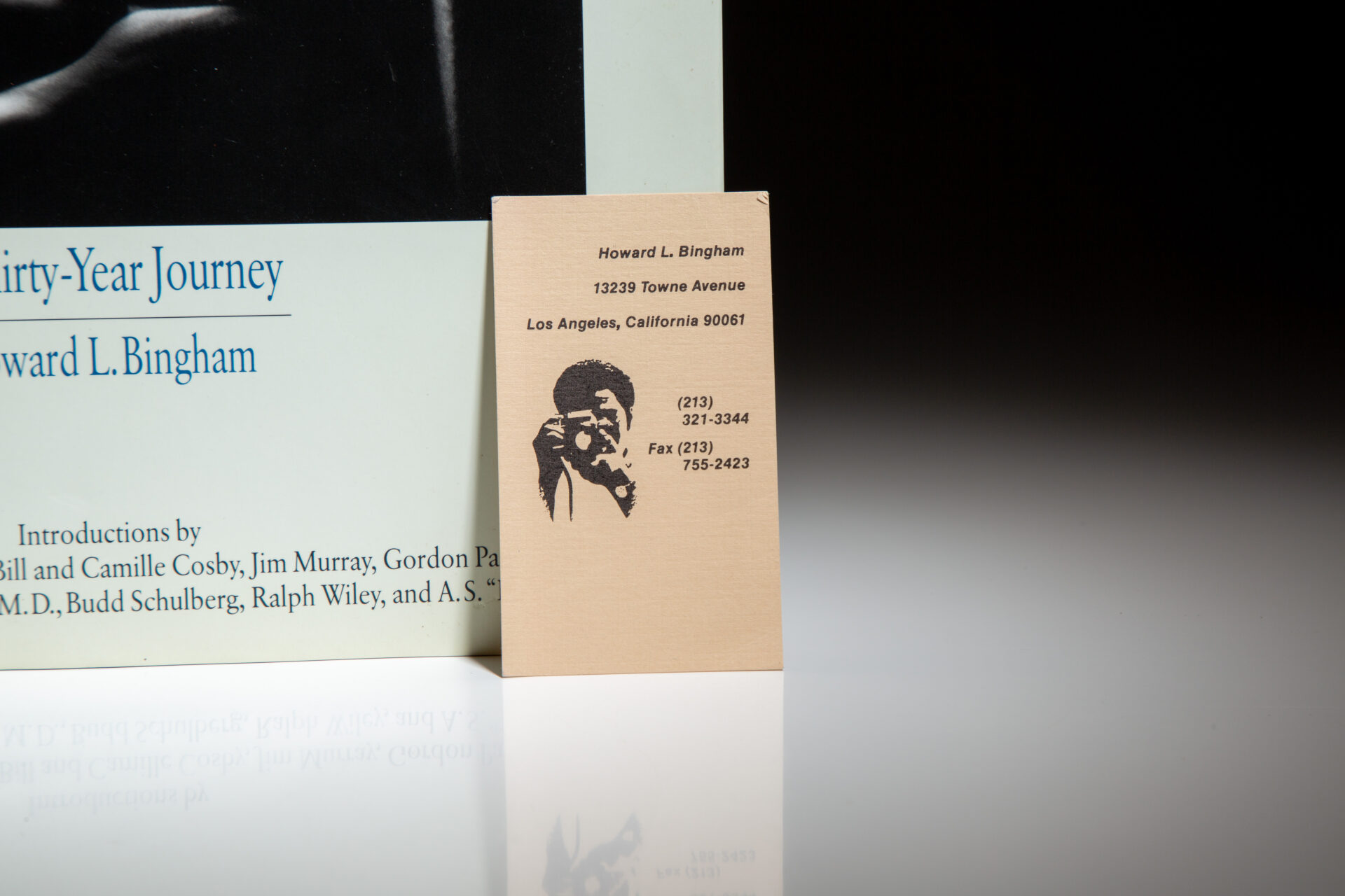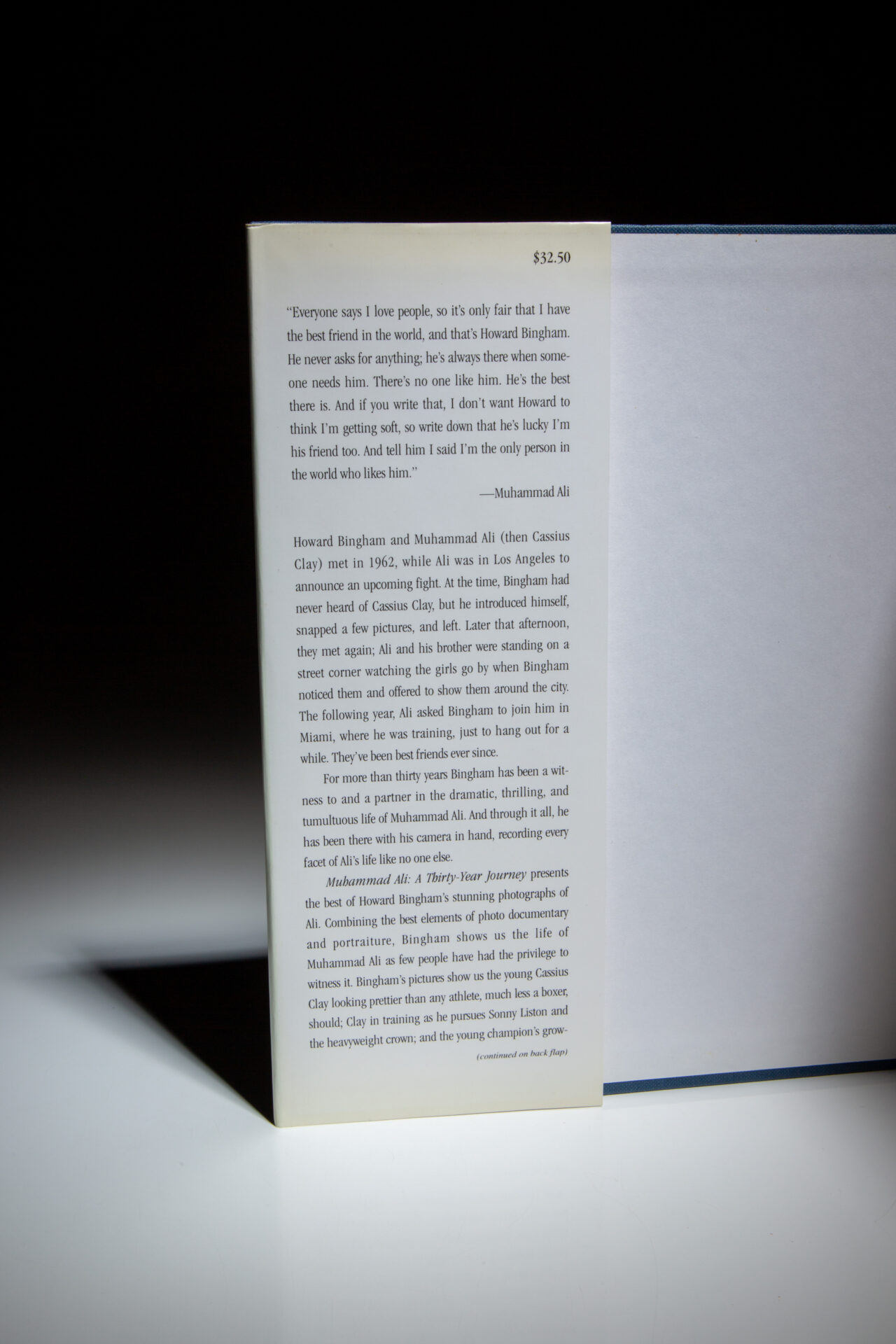 Octavo, [192pp]. Blue hardcover, title stamped in gilt on the spine. The first printing, with a full number line on the copyright page. Foxing along top edge of text block, internally clean. In the publisher’s dust jacket, $32.50 retail price on the front flap, short closed tear along top edge, a bright, near fine example. Includes the business card of the photographer, Howard L. Bingham.