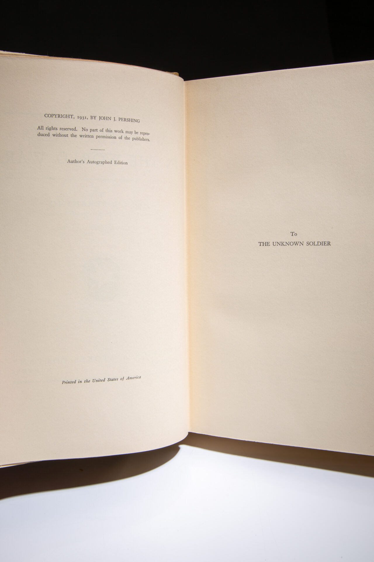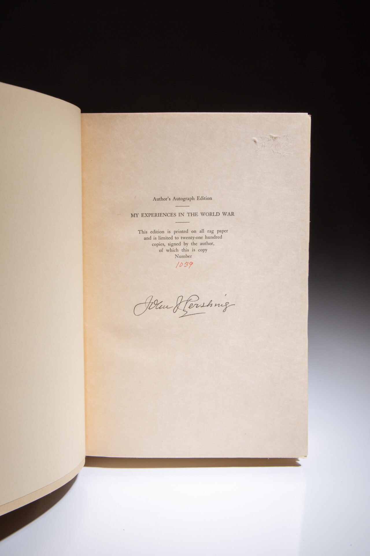 This is a limited edition publication of 2,100 copies, this being number 1039, signed by General John J. Pershing on the limitation page.