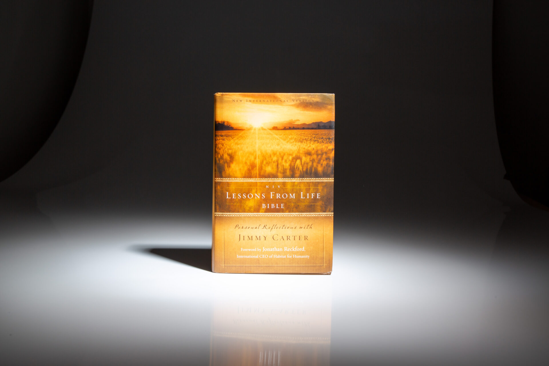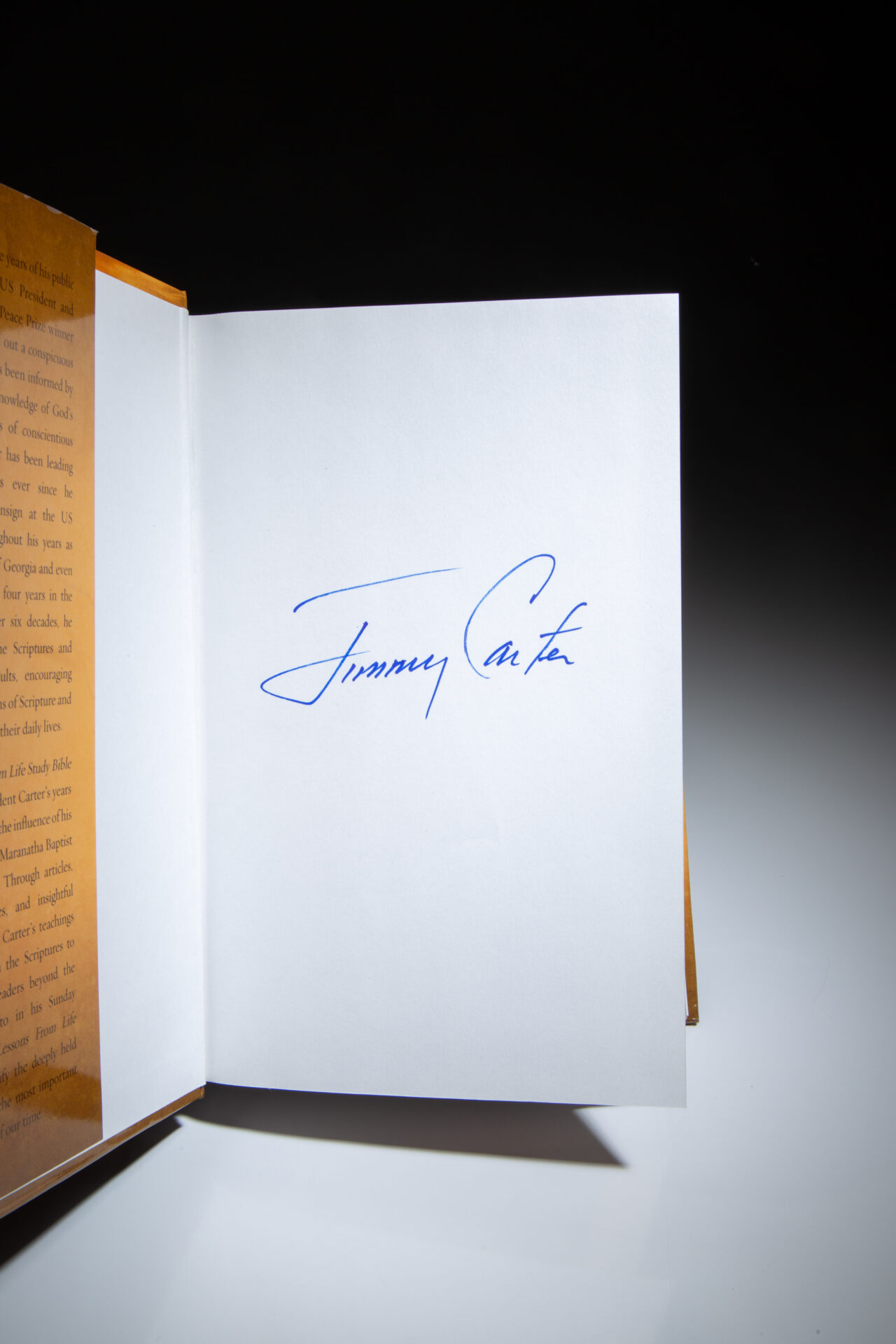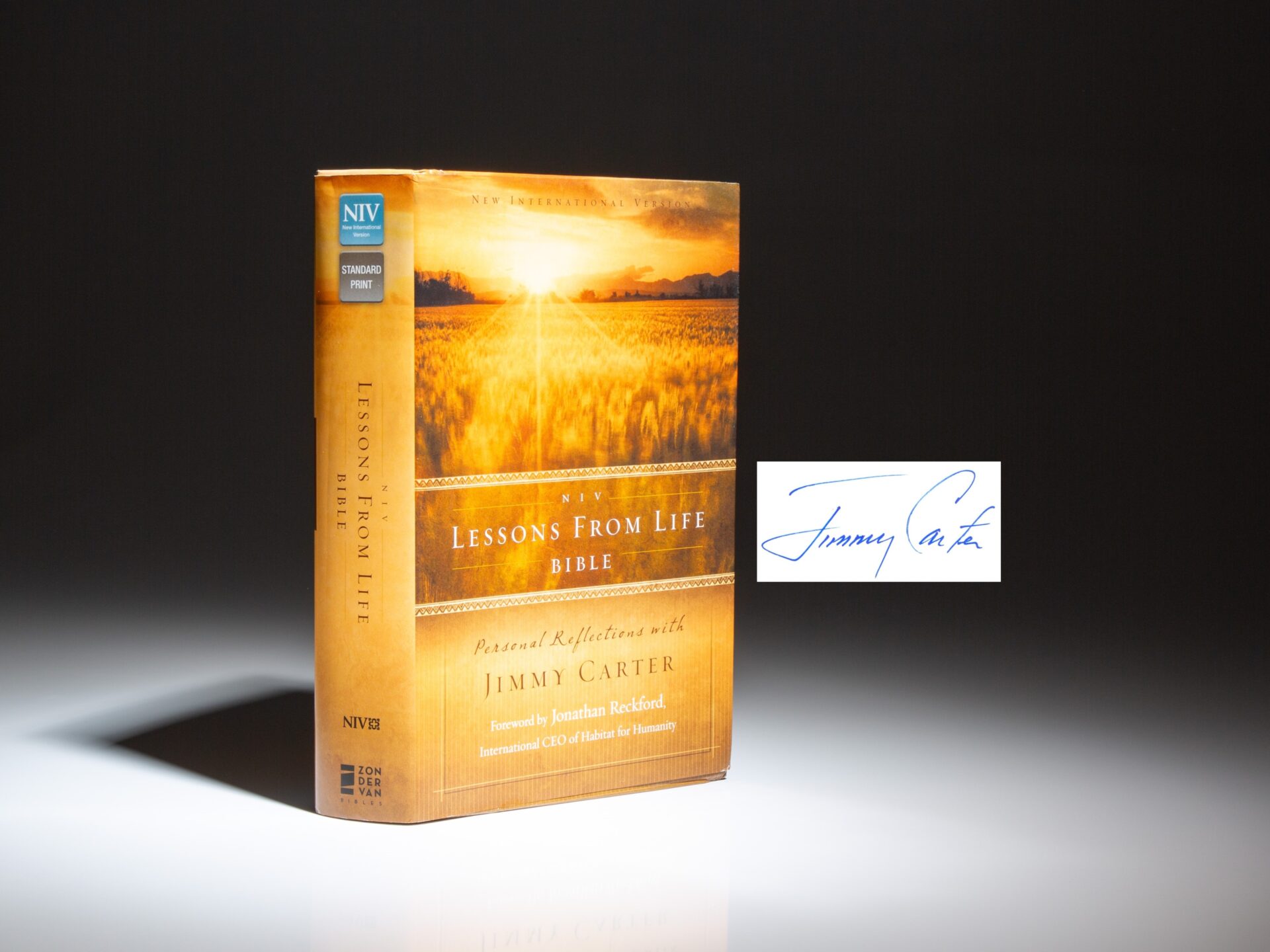 The signed first edition of NIV Lessons from Life Bible: Personal Reflections with Jimmy Carter, signed twice by President Carter.