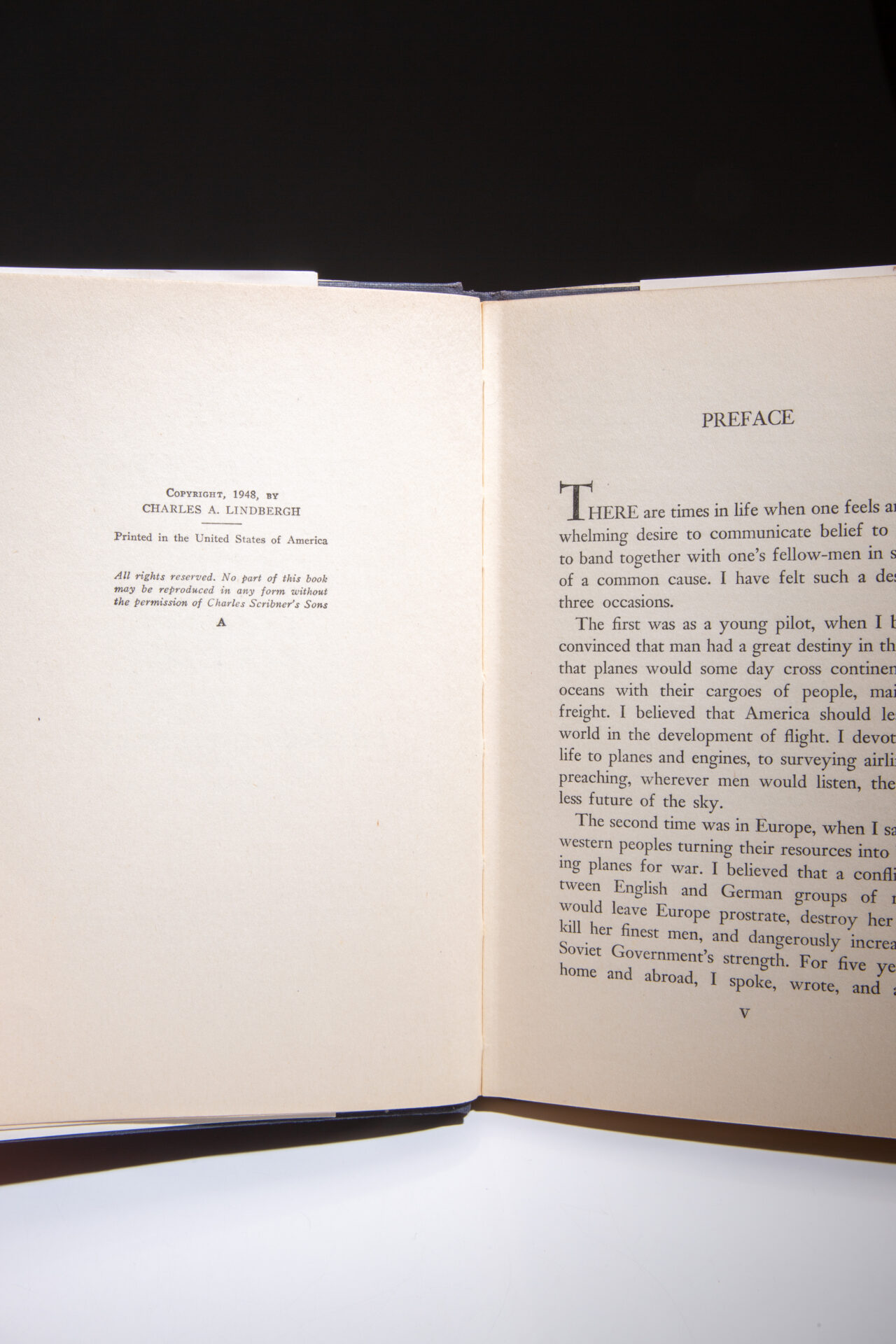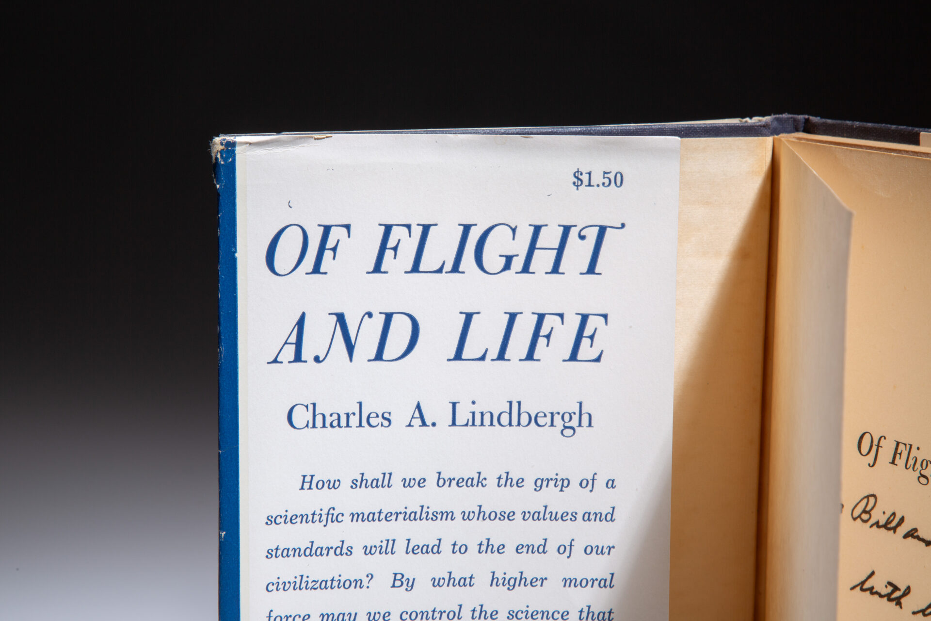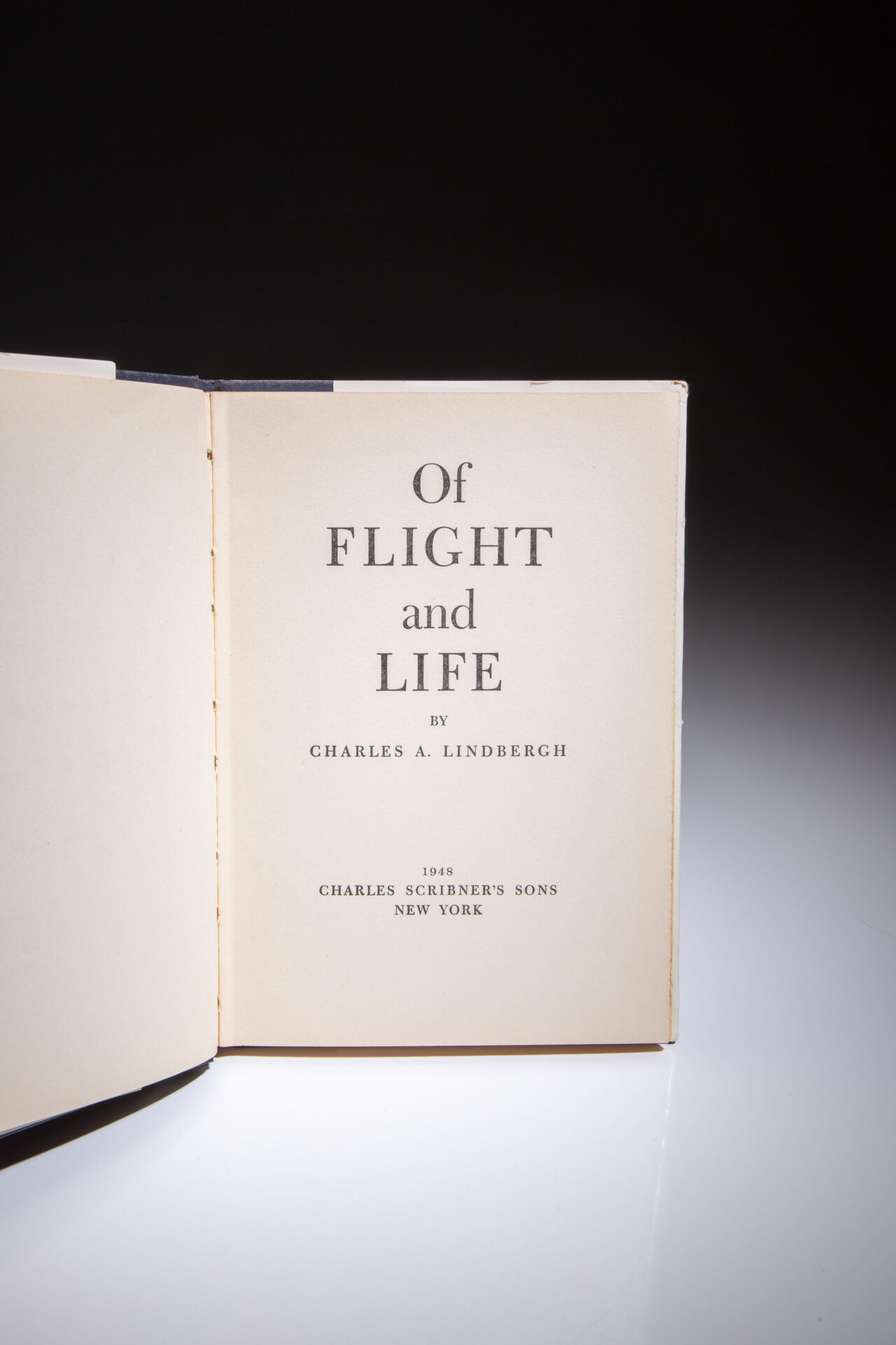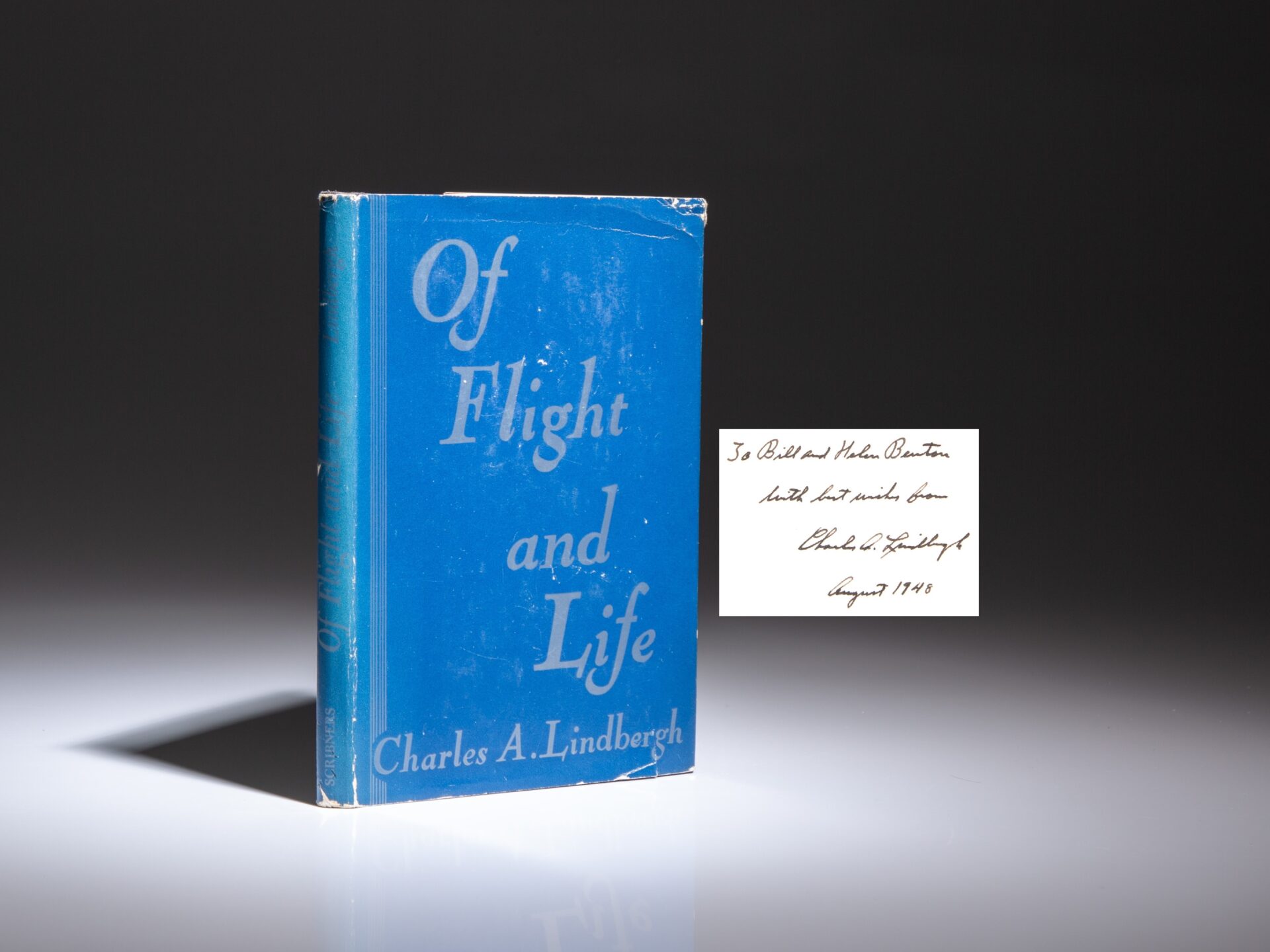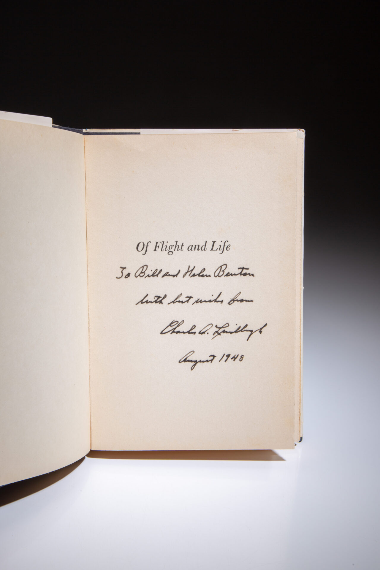 First edition of Charles Lindbergh’s Of Flight and Life, inscribed to Connecticut Senator William Benton.