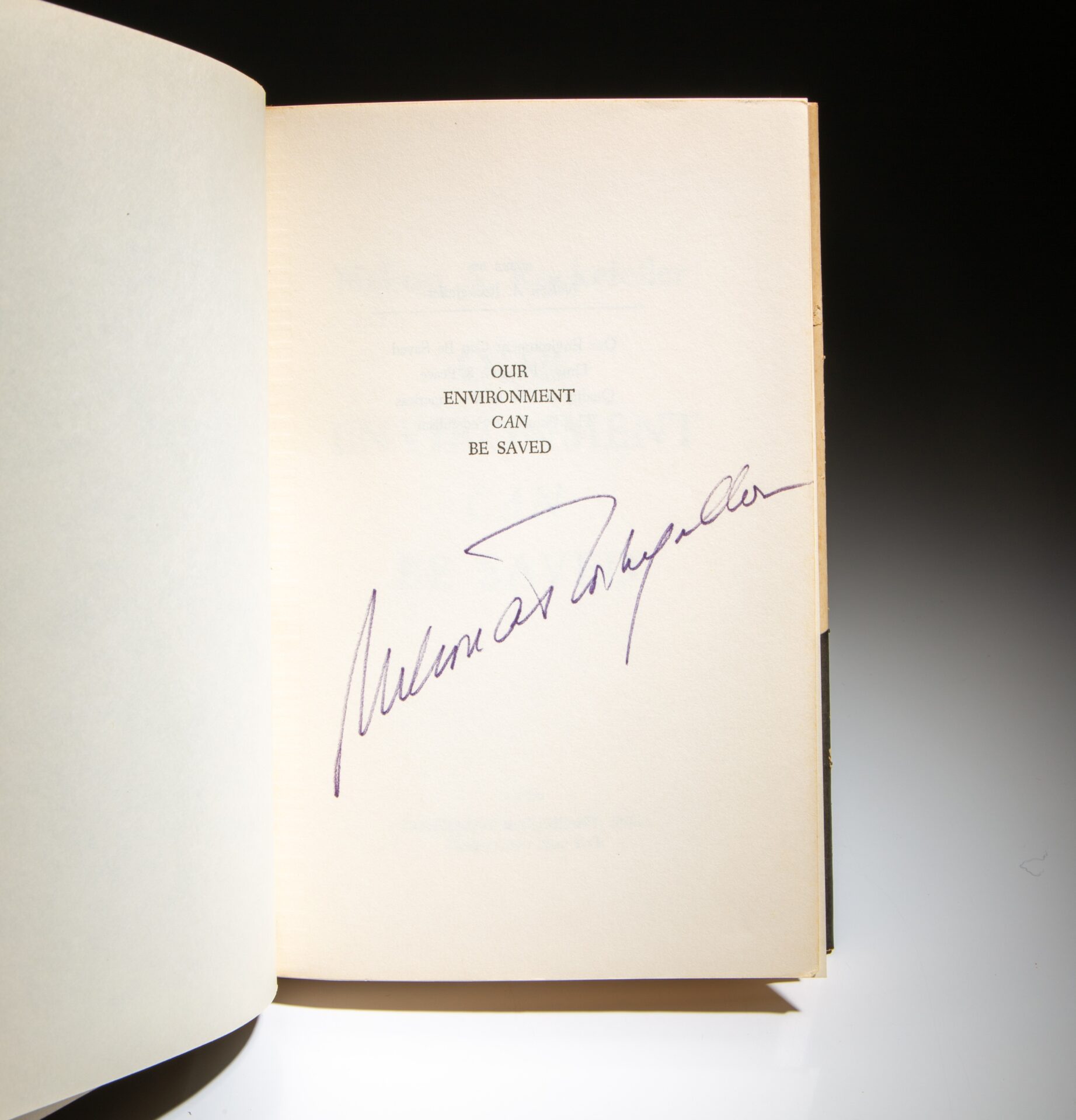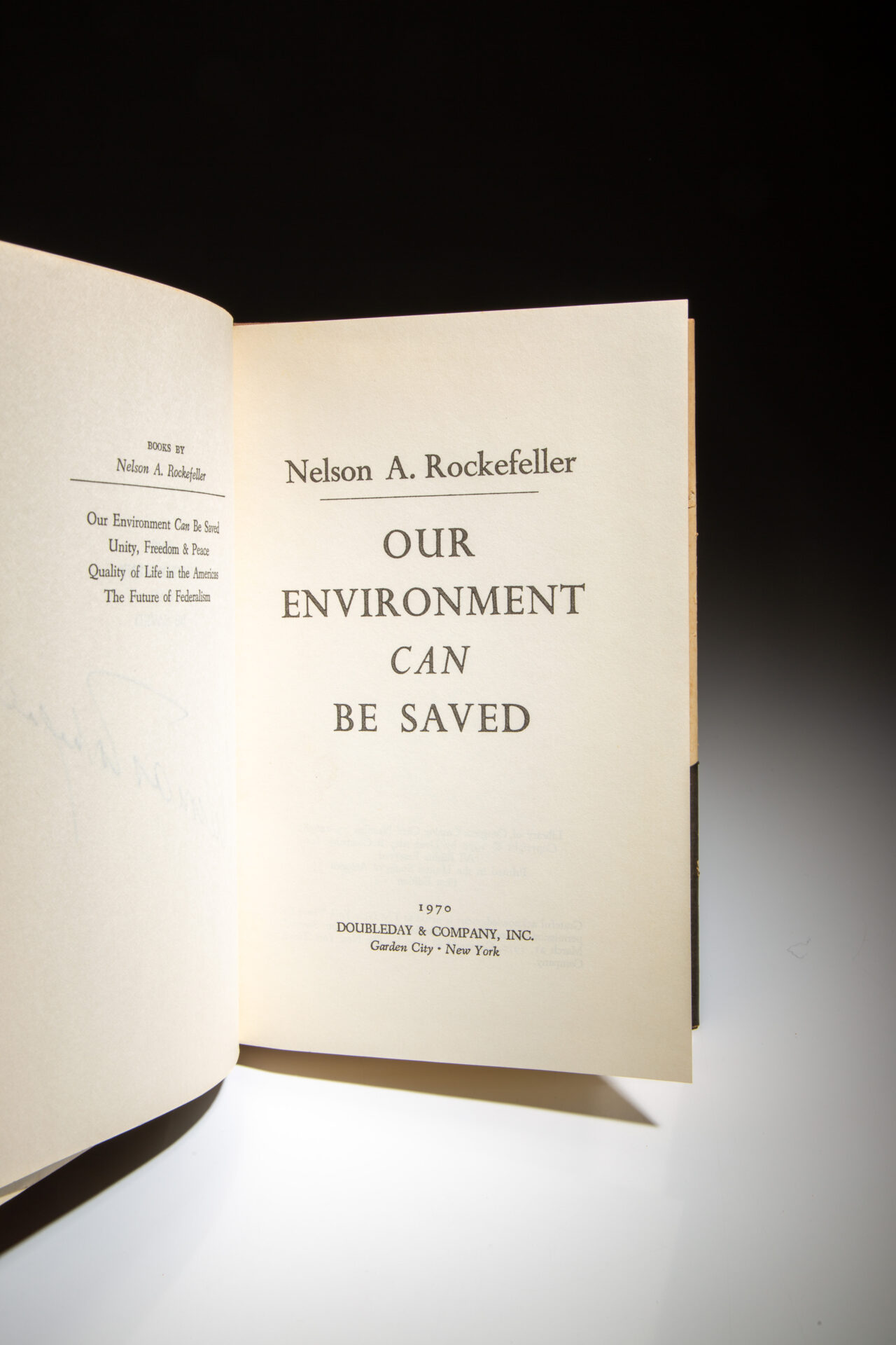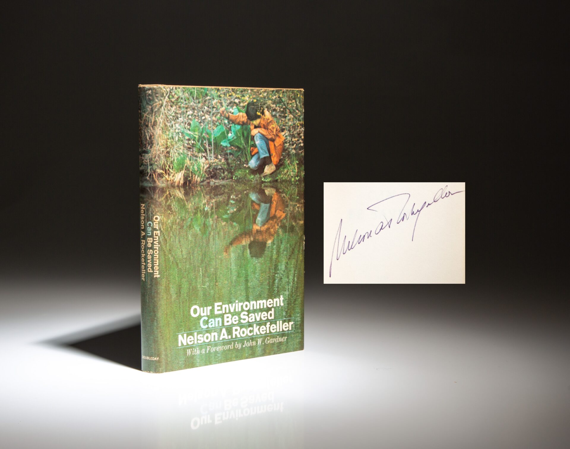 The first edition, first printing of Our Environment Can Be Saved, signed by Gov. Nelson A. Rockefeller.