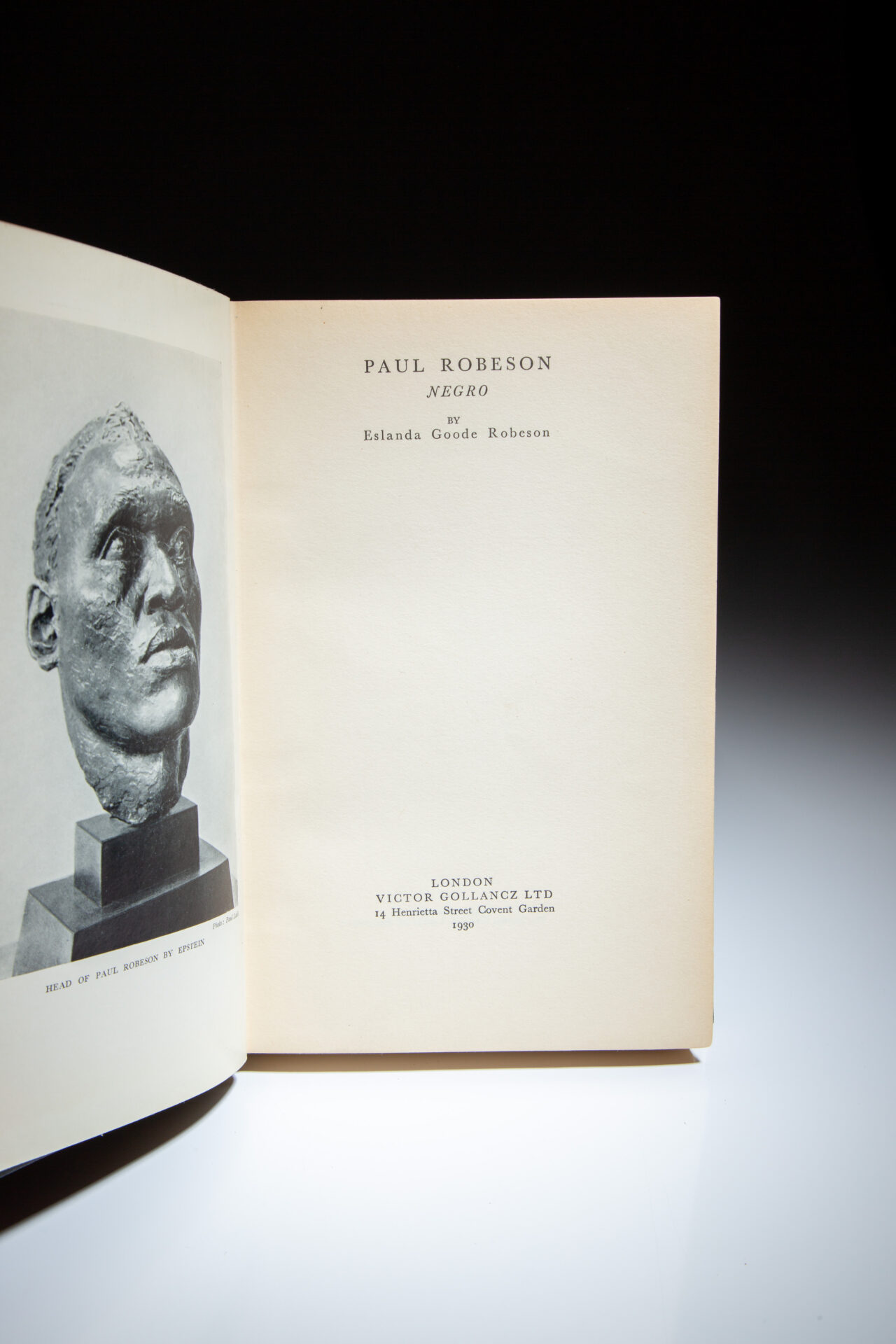 Inscribed on the front free endpaper: “My own copy, Eslanda Goode Robeson.”