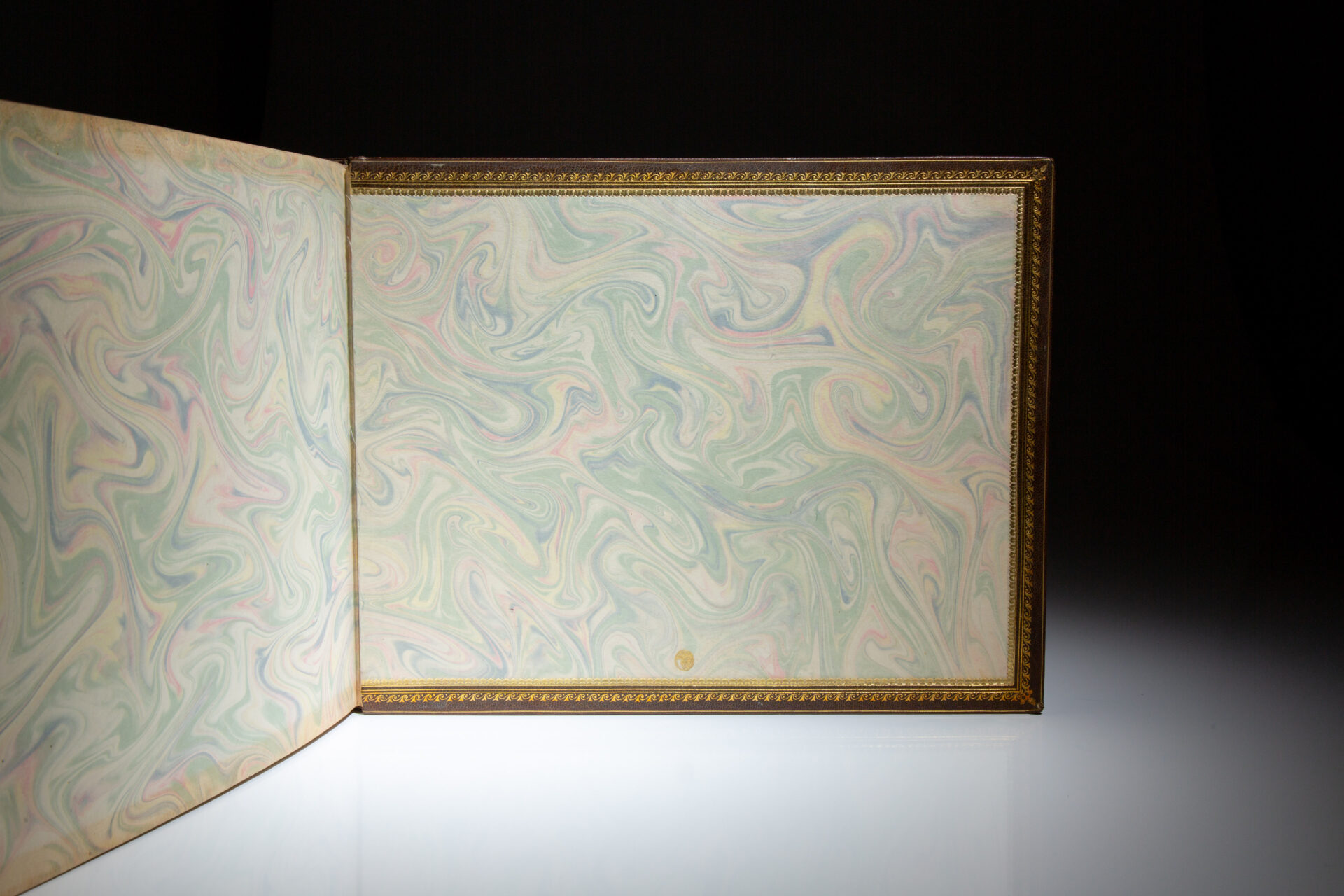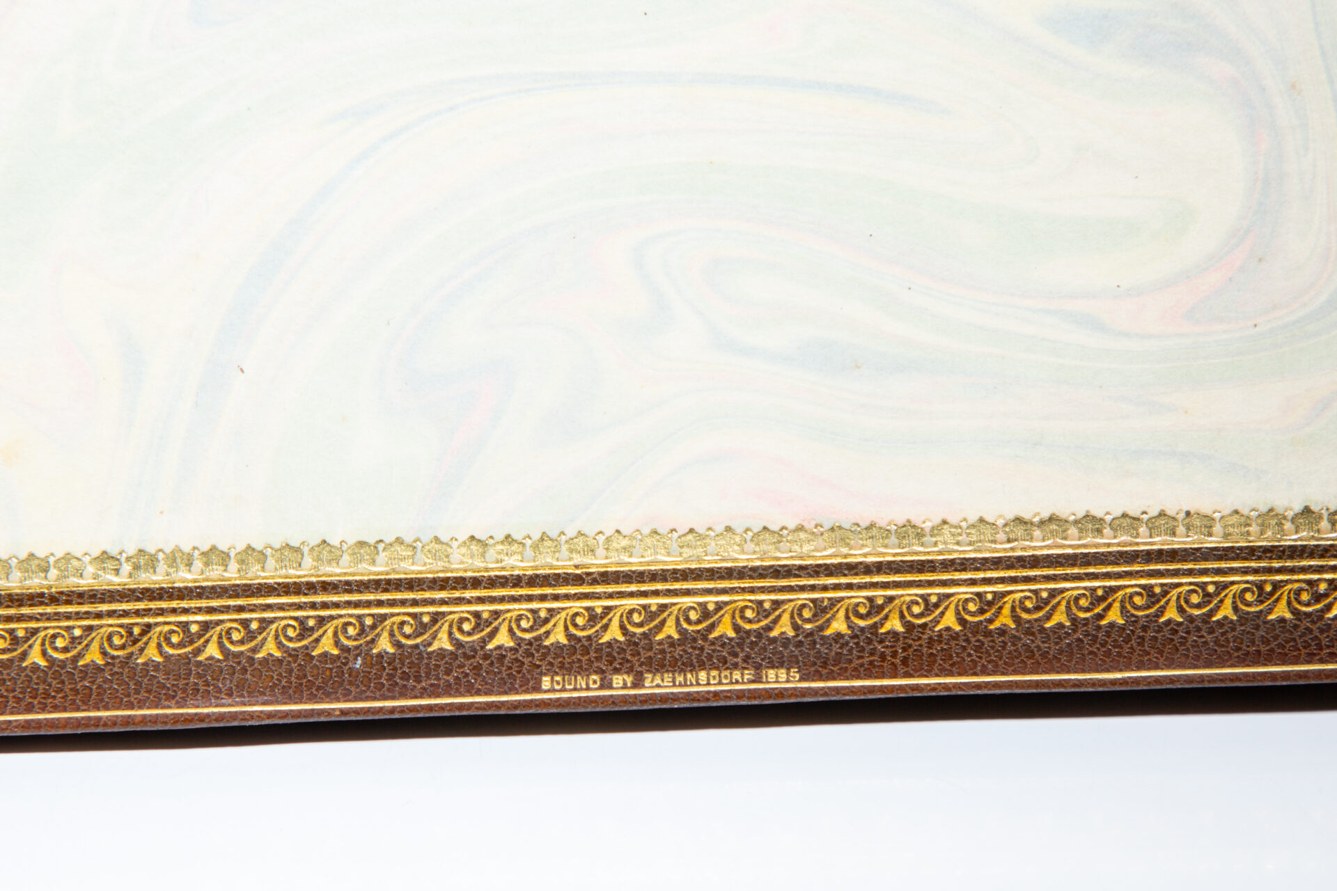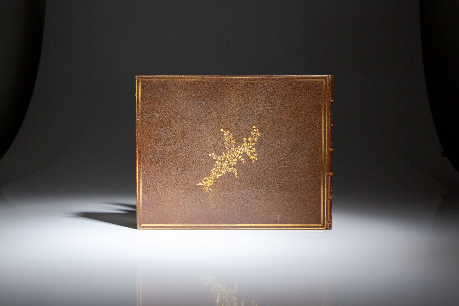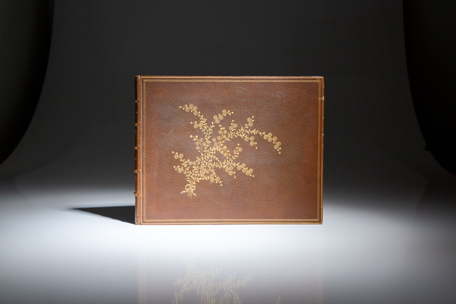 Quarto, [56pp], [10]. Full crushed brown levant, title in gilt, raised bands along spine. Intricate floral gilt hand-tooled illustrations on both covers. All edges gilt, gilt dentelles. Marbled endpapers. Scattered foxing to preliminary leaves, solid binding. Complete with 26 illustrated comic plates by E.T. Reed, and a tailpiece illustration. Publisher’s original cloth boards and spine affixed at rear. Bookbinders “Exhibition Stamp” on the rear pastedown.