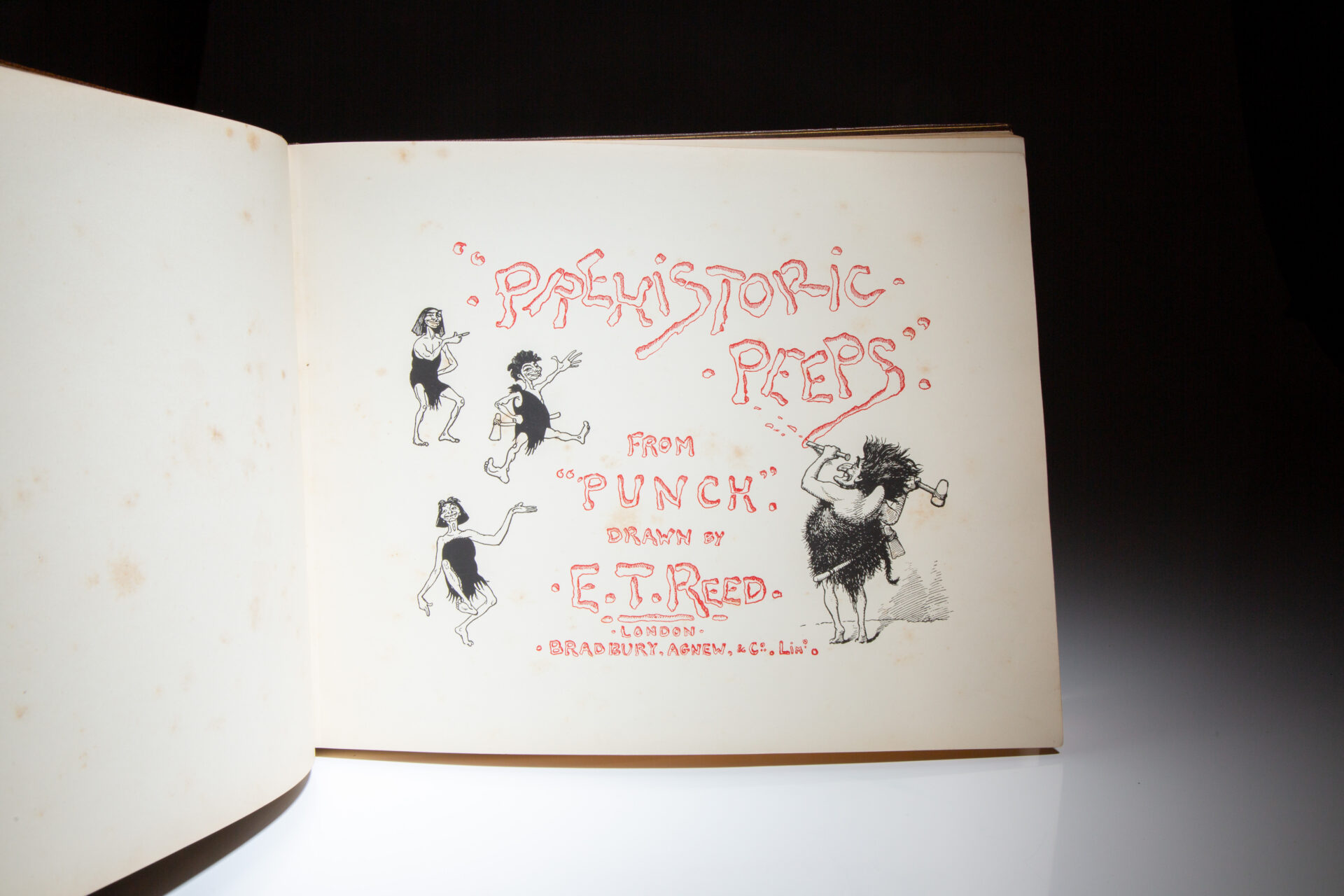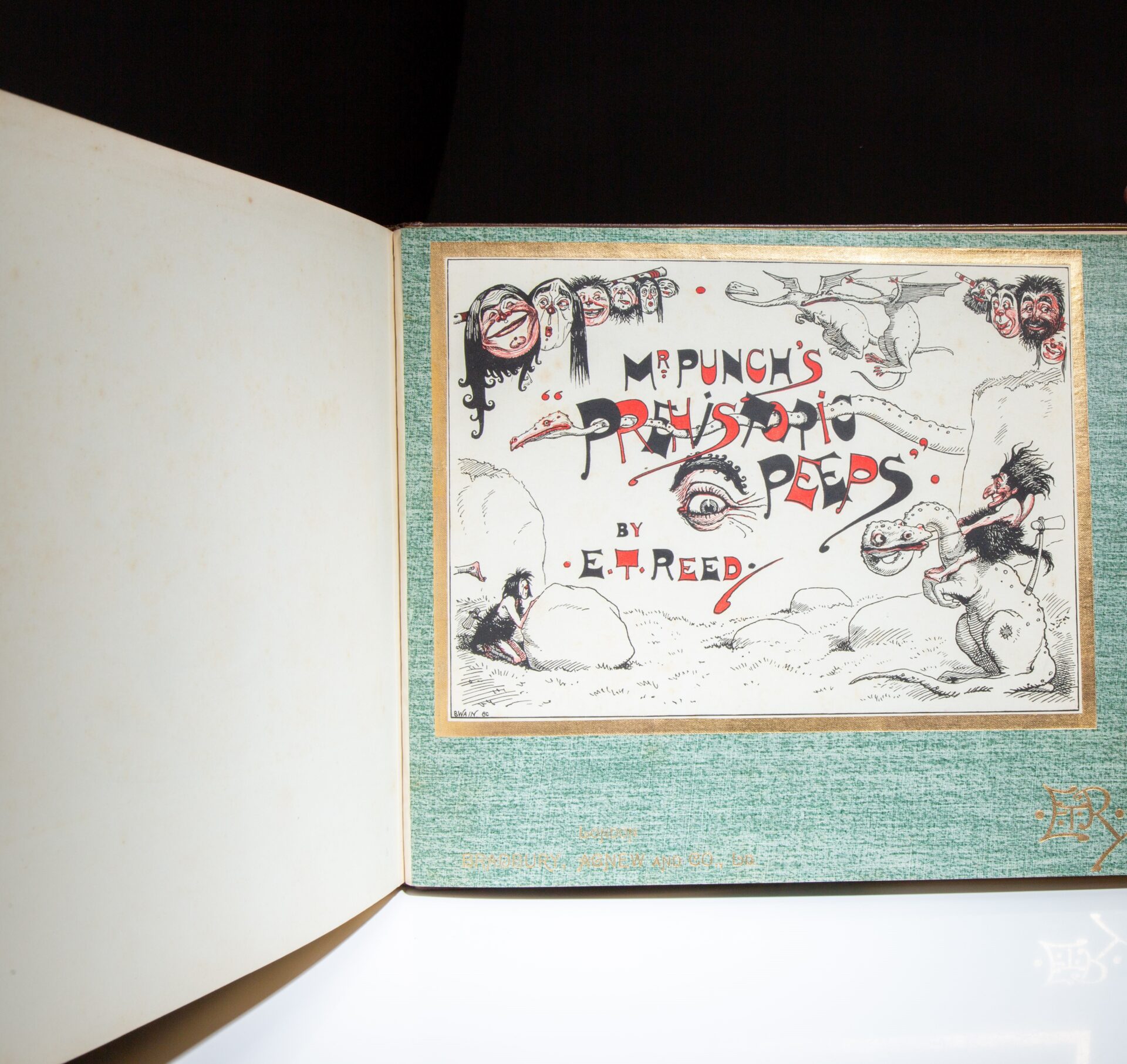 Prehistoric Peeps From “Punch” by Edward Tennyson Reed, in a luxurious hand-tooled, exhibition binding by Zaehnsdorf.
